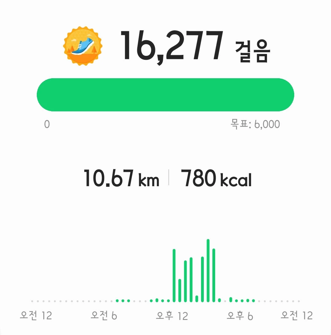 오늘 하루 1만6천보, 10.6km를 걸었다. 헐!