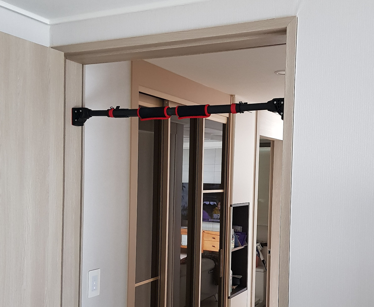 드디어 문틀에 철봉 장착 완료!