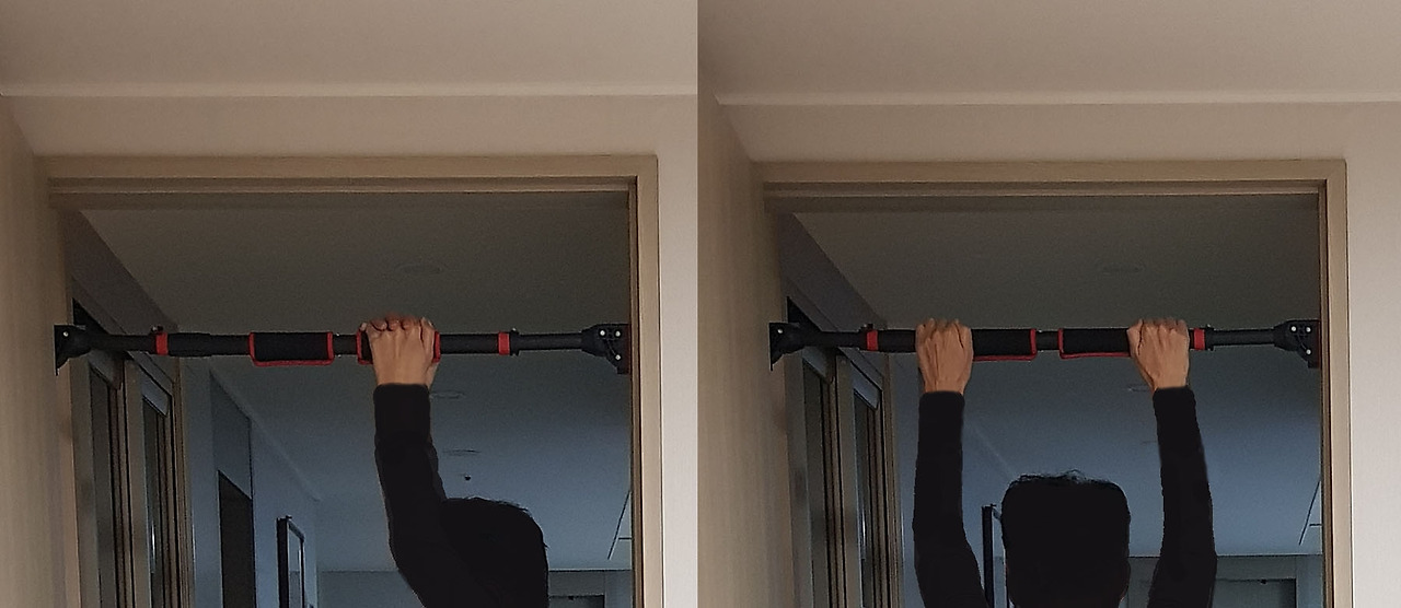 일단은 핫팩으로 어깨를 충분히 덥히고, 헛둘 헛둘~ 준비운동도 좀 하고, 힘들게 두 팔을 들어 올려 철봉을 잡았다. 그리고 체중을 이용하여 몸을 축 늘어뜨리니...