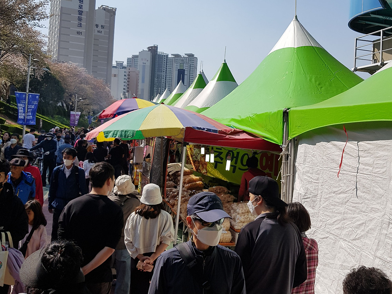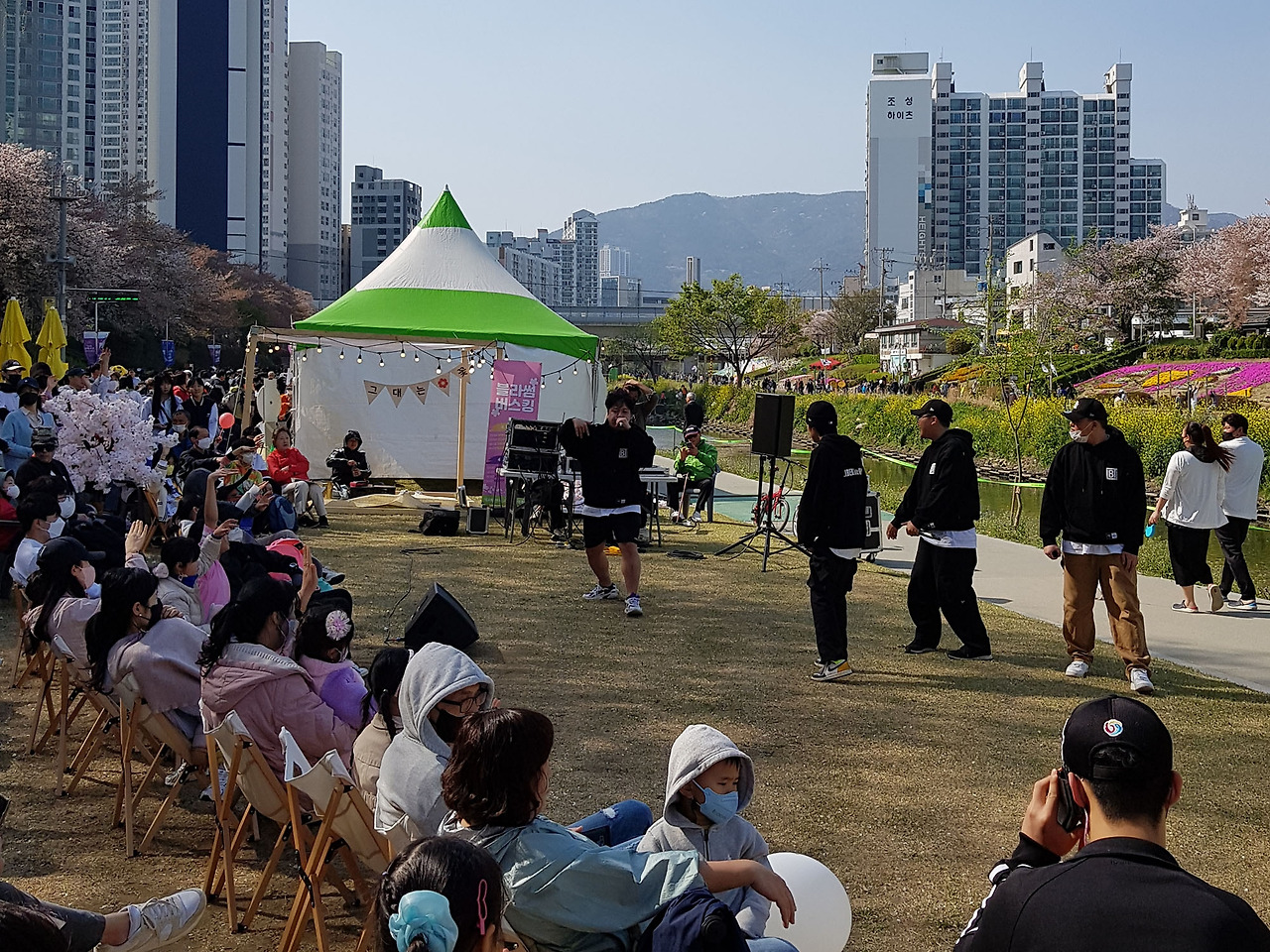 무대에서는 장구 장단에 노랫가락이 흐르고 힙합 크루가 버스킹을 한다.