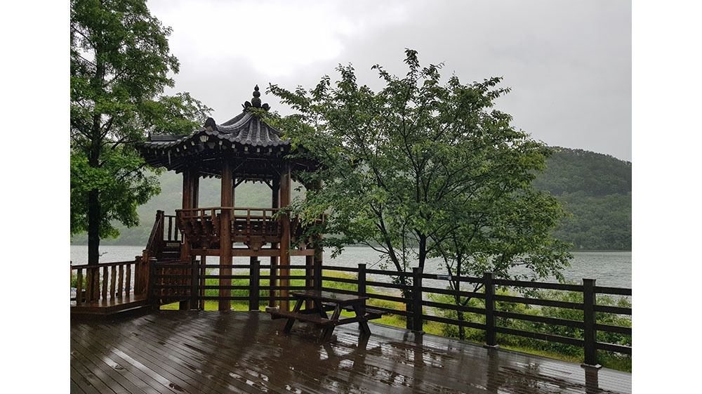 다시 길을 나섰다. 투둑투둑빗발이 더 거세지고 바람도 세차게 불었다. 이왕에 젖은 몸 더 트인 공간으로 나갔다. 저 앞에 정자가 보였다. 평소에는 아저씨 아주머니들이 삼삼오오 모여 싸가지고 온 도시락도 먹고, 과일을 먹으면서 이야기 꽃을 피우던 곳이었다. 어떤 때는 아저씨나 아주머니 몇몇이 피곤한 몸을 누이고 잠을 청하기도 했던 곳인데, 그날은 역시 아무도 없었다.