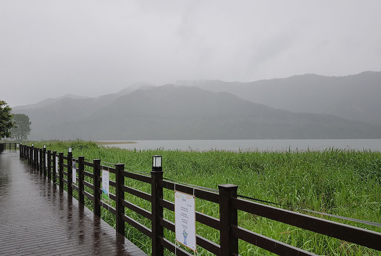 후두둑 후두둑 우산에 부딪히는 빗소리를 들으며 호젓한 길을 걷는 것도 꽤나 운치가 있었다. 회색 하늘과 그에 비해 조금은 옅은 저수지의 일렁이는 물결이 한편으로는 쓸쓸하기도 하고 한편으로는 부드럽게도 느껴졌다. 빗소리와 더불어 터벅터벅 내딛는 내 발소리를 귓가로 흘리며 한참을 걸었다.