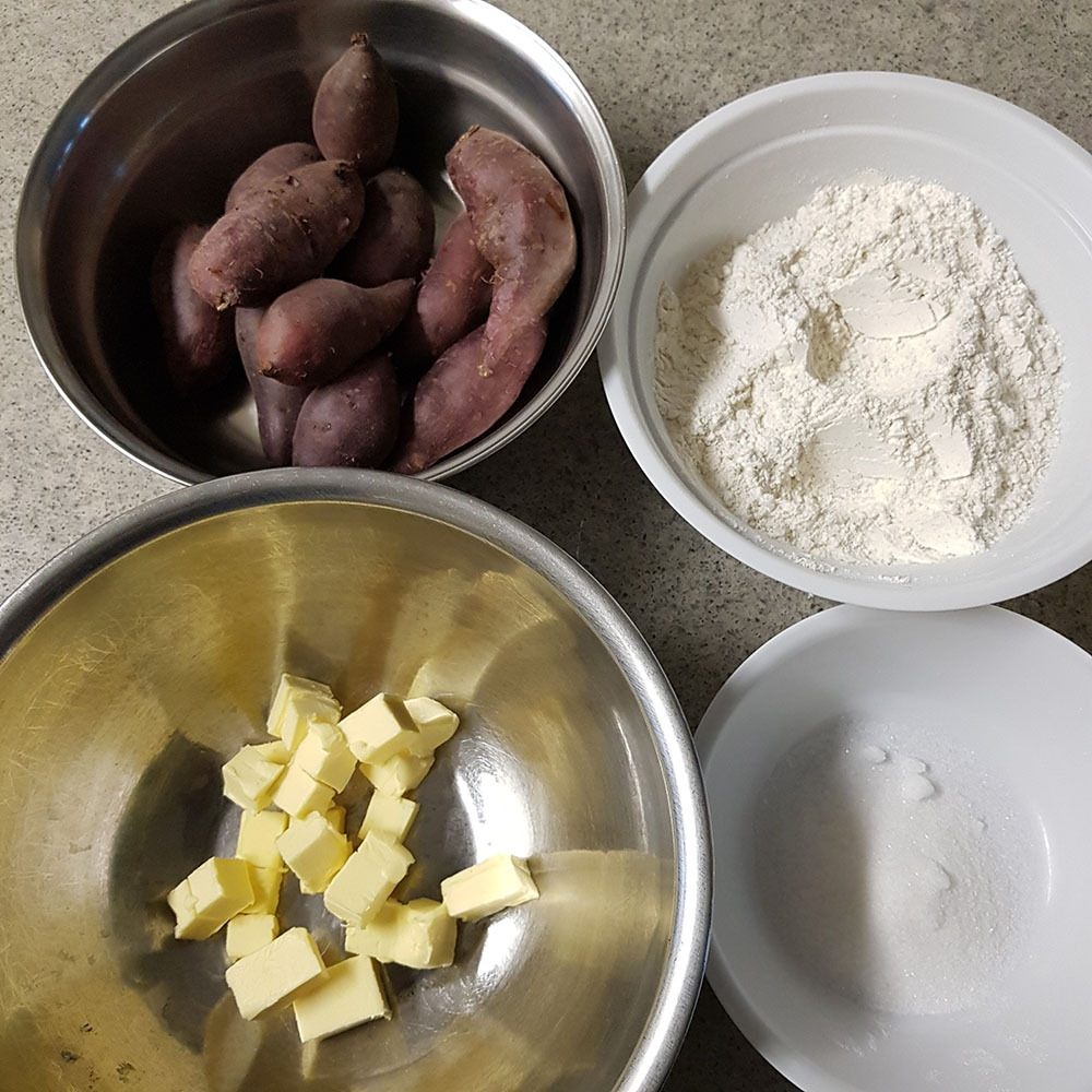 그렇게 해서 외손자 맞춤 쿠키를 만들기로 했다. 계란을 빼고 버터와 설탕 함량을 낮추고. 그래서 맛이 날까? 고민이 되었다. 그러다 눈에 띈 것이 있었는데 바로 고구마였다. 그전날 집 앞 야채가게에서 사 온 것이었는데 꽤 달고 맛이 있었다.