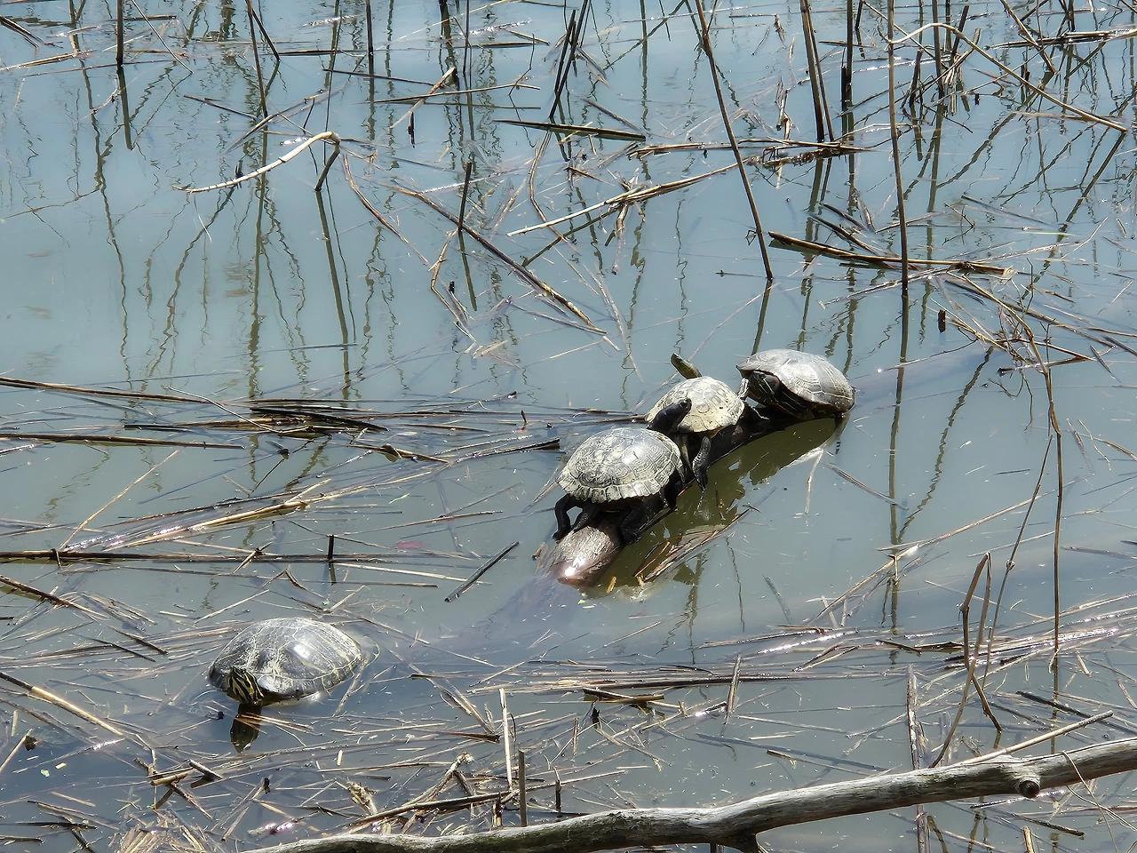 자라 가족이 따뜻한 봄볕을 쬐고 있다. 고개를 바짝 쳐들고 봄내음을 맡는다. 나도 따라서 봄내음을 맡아본다.