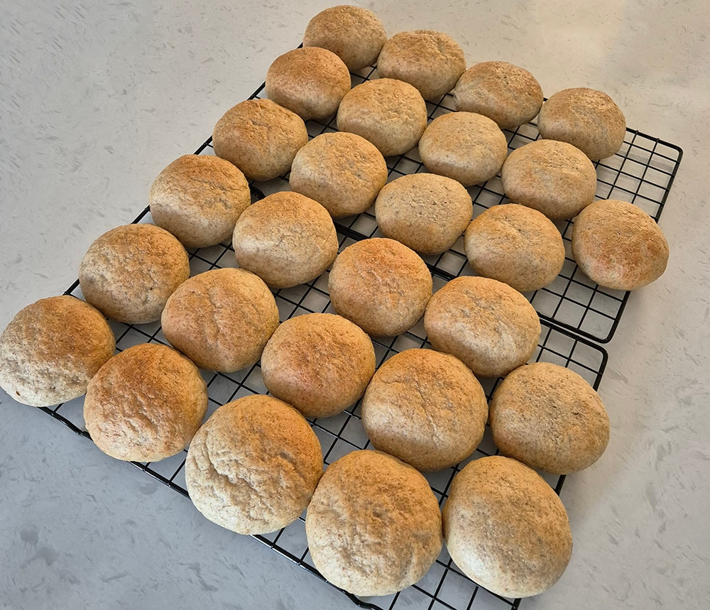 햄버거와 모닝빵의 중간쯤 되는 크기로 통밀호밀빵을 구웠다. 통밀가루 70%에 호밀가루 30%. 아무래도 백밀가루로 구운 빵보다는 식감이 조금 더 단단한 편이다. 그러나 맛은 구수하다. 총 스물일곱 개가 나왔다. 당장 먹을 몇 개만 놔두고 나머지는 봉지에 넣어 냉동실행.