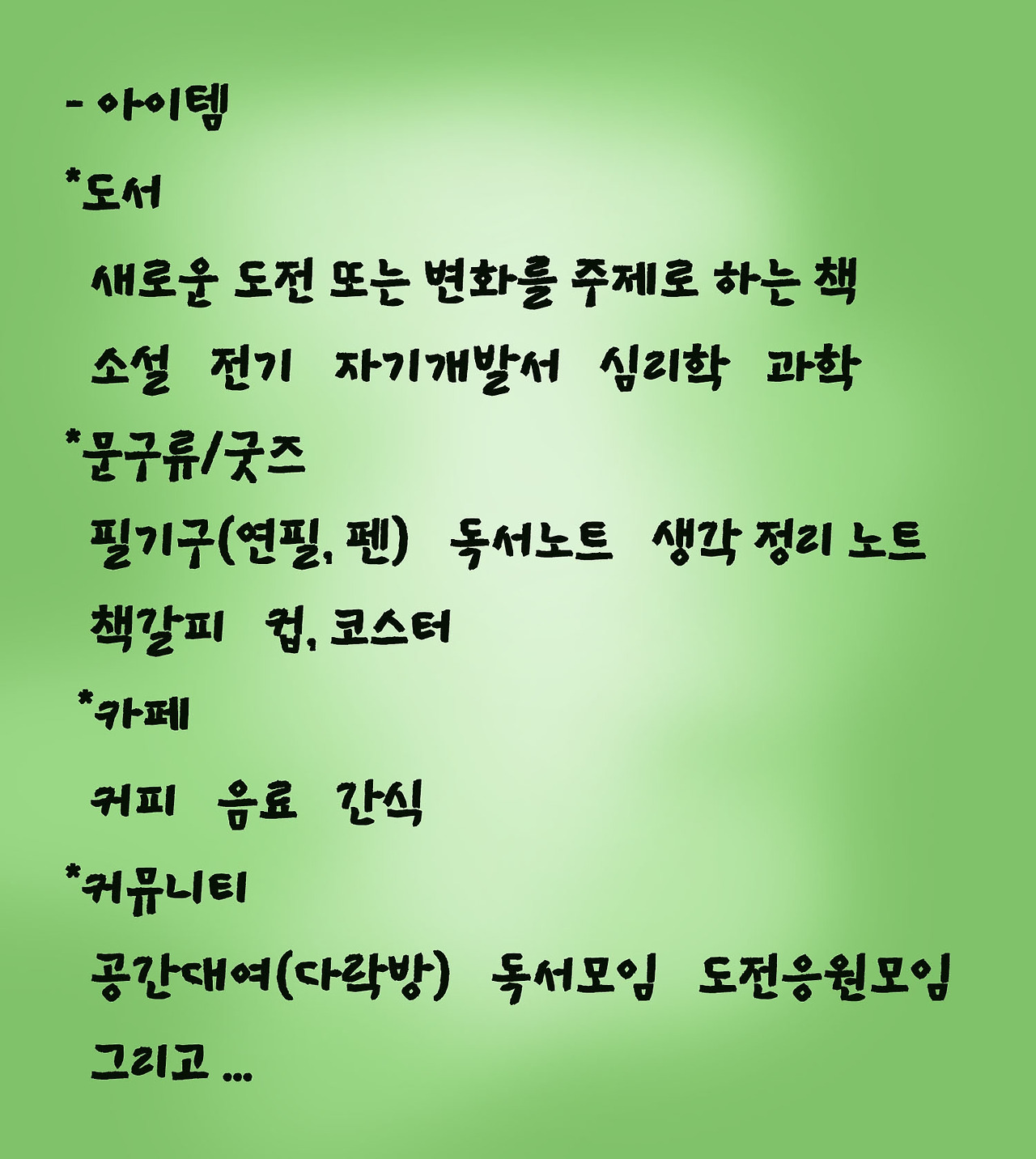 딸은 왜 북카페를 하고 싶어 할까요? 사실 엄밀하게 말하면 책방을 하고 싶어 합니다. 다만 수익 문제로 책방에서 커피를 파는 것이죠. 딸이 평소에 생각하고 있던 것을 정리하였습니다. 그리고 내 앞에 내밀었습니다.
