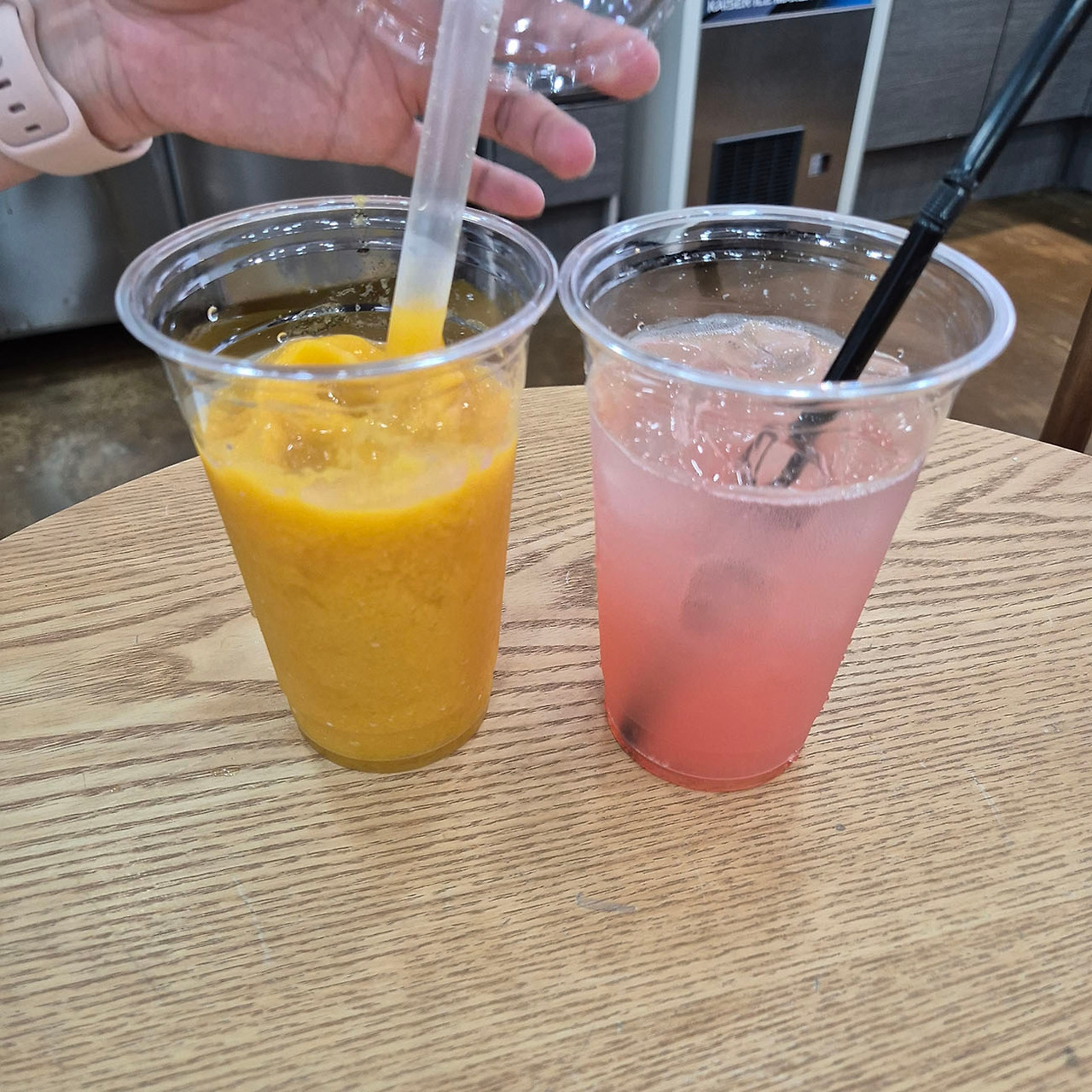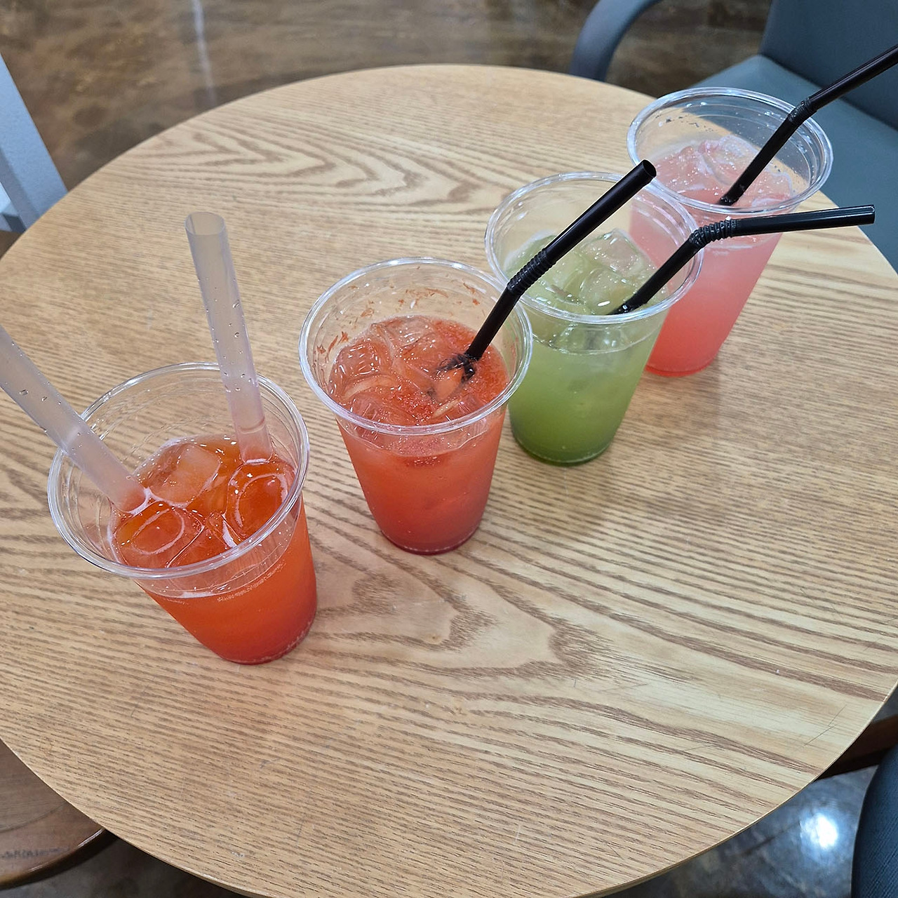 다음은 말차라테. 250년 전통의 일본산 유명 말차라는데 정말 맛이 좋았습니다. 지금껏 먹어본 어떤 말차라테에 비해서도 전혀 뒤떨어지지 않을 정도였죠. 그리고 이어서 에이드 네 종류를 만들어 시음을 해보았습니다. 자몽, 청포도, 자두, 구아바. 저는 찬걸 별로 좋아하지 않지만 더운 여름철 젊은 사람들이 좋아할 것 같더군요. 그리고 마지막으로 애플망고 스무디를 만들었습니다. 망고스무디는 제가 베트남에 있을 때 워낙 많이 먹어본 음료인데, 거기에 비해서도 크게 손색이 없어 보였습니다.베트남에서는 신선한 생과일을 사용한 것이었죠.