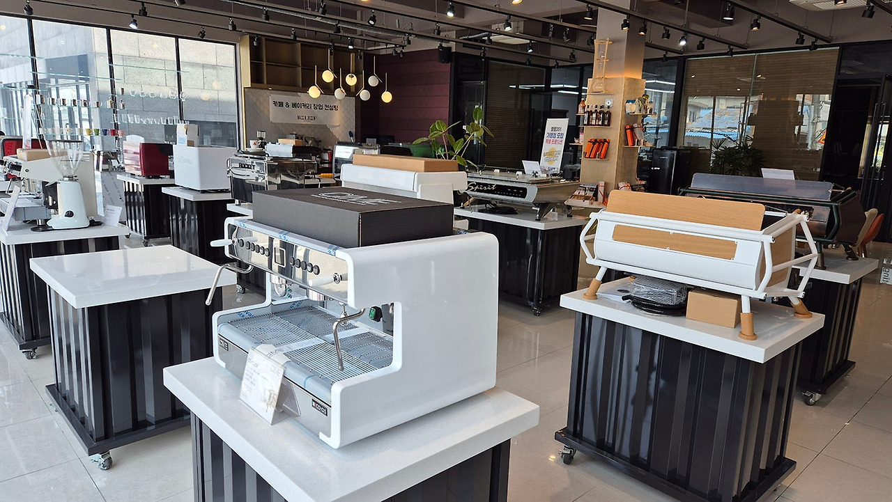 매니저분께서 저희가 하고자 하는 업종과 위치 그리고 규모 등을 물어보시고, 구체적인 제안을 해주셨습니다. 책방을 하면서 커피를 팔 것이기 때문에, 커피 손님이 전문 카페처럼 많지는 않다는 가정하에 보급형 에스프레소 머신으로도 충분하다는 설명이었습니다. 물론 고급형 에스프레소 머신을 쓰면 좋겠지만, 한 대에 이천만 원 정도 하는 고급형을 쓰기에는 가성비가 너무 떨어진다고 하였습니다. 에스프레소 머신 선정이 중요한 이유는, 먼저 에스프레소 머신이 정해져야 거기에 밸런스를 맞추어 다른 설비들을 선택할 수 있기 때문입니다.