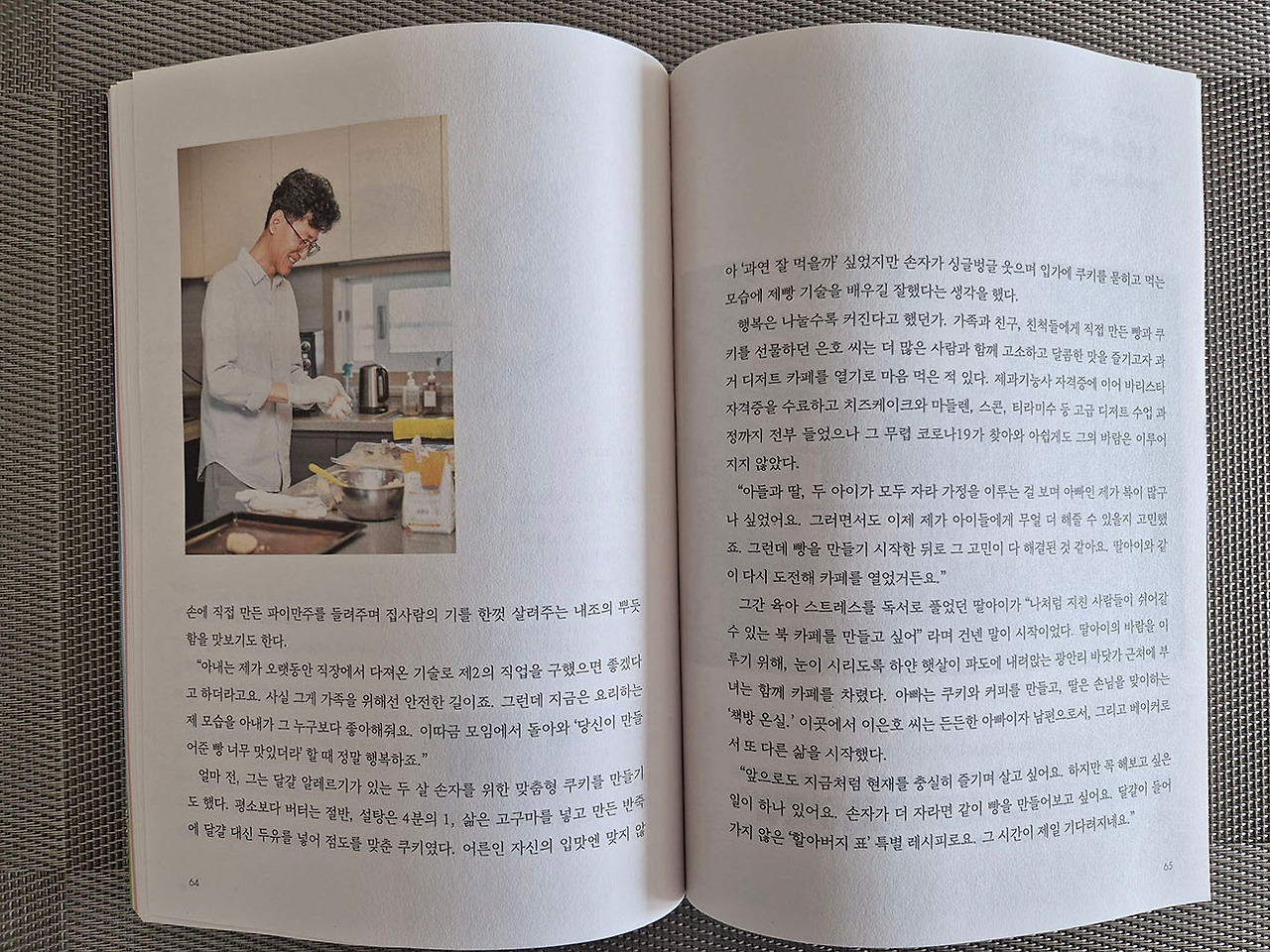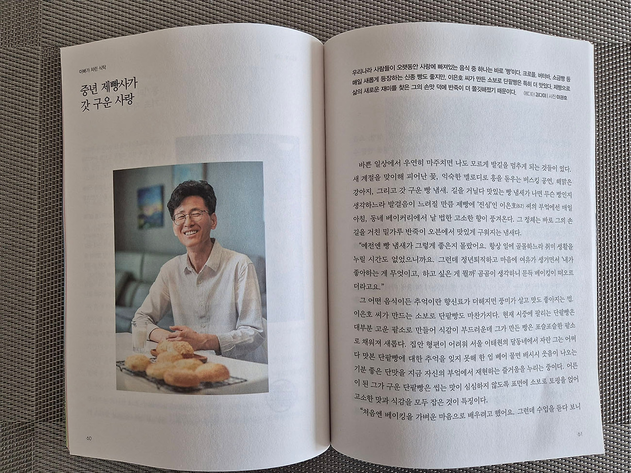 한 달 전 월간 샘터 기자님과 사진작가님이 우리 집을 찾았다. 샘터에 '아빠가 차린 식탁'이란 코너가 있는데, 거기에 실을 인터뷰와 빵 만드는 사진을 찍기 위해서였다. 사진작가님은 각종 촬영장비가 든 커다란 트렁크를 힘들게 들고 오셨다.