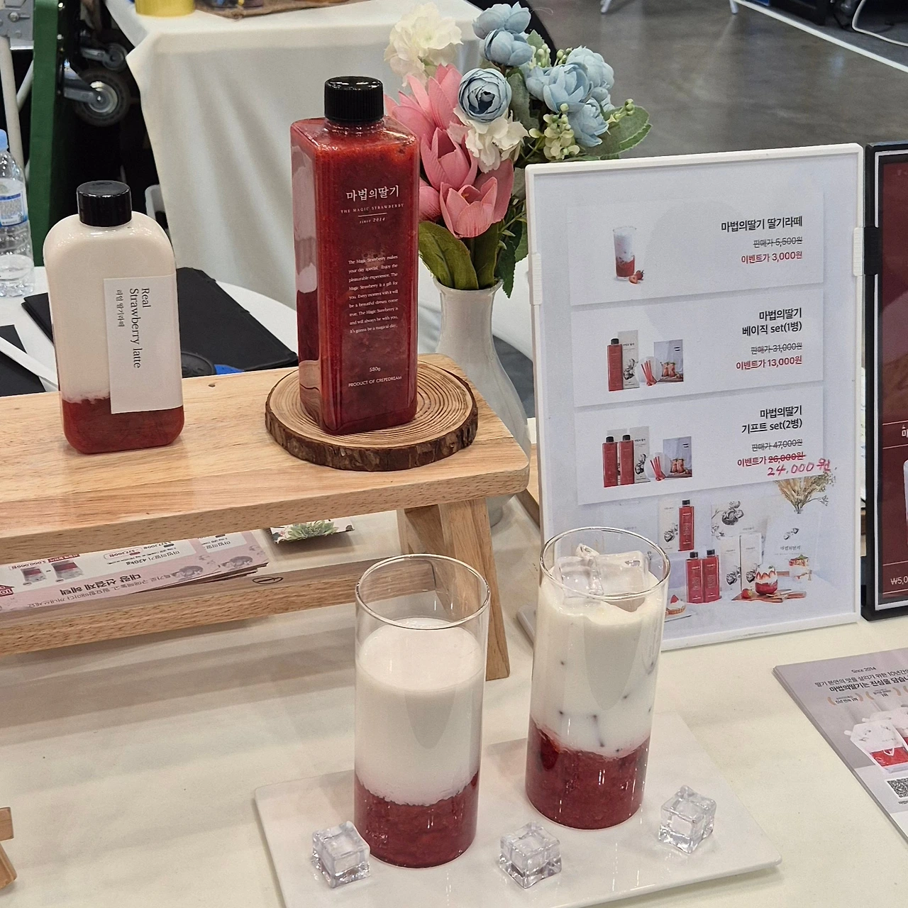 사실 저는 지금껏 카페에 가면 아메리카노나 카페라테를 마시는 게 전부였습니다. 그것도 따뜻한 것을 주로 먹고 가끔 카페라테만 아이스로 먹습니다. 그래서 밀크티나 과일라테, 에이드 같은 것은 잘 모릅니다. 그런데 젊은 사람들 특히 여성 손님들에게는 그런 음료가 필수라고 하네요. 어쨌든 메뉴는 전적으로 딸의 의견에 따라야 할 것 같습니다. 딸은 현장에서 구매계약을 하면 10%의 물량을 더 준다는 제안에 솔깃해서 과일청 구매계약을 하였습니다. 양이 많아서 자칫하면 올여름 딸기아이스라테를 엄청 마시게 될지도 모르겠습니다.