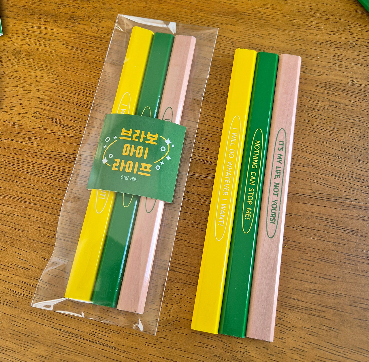 딸이 디자인하고 글자를 인쇄하여 제작한 삼색 연필입니다. 거기에 쓰인 문장을 보고 웃음이 절로 났습니다. 도대체 딸의 근자감은 어디서 나온 걸까요? 저를 닮은 것 같지는 않은데 말입니다.