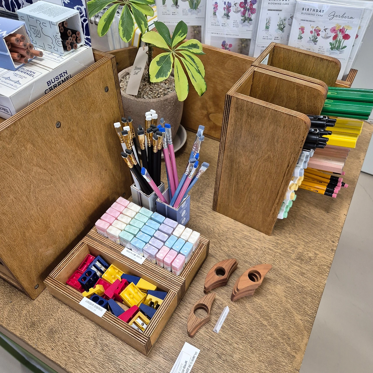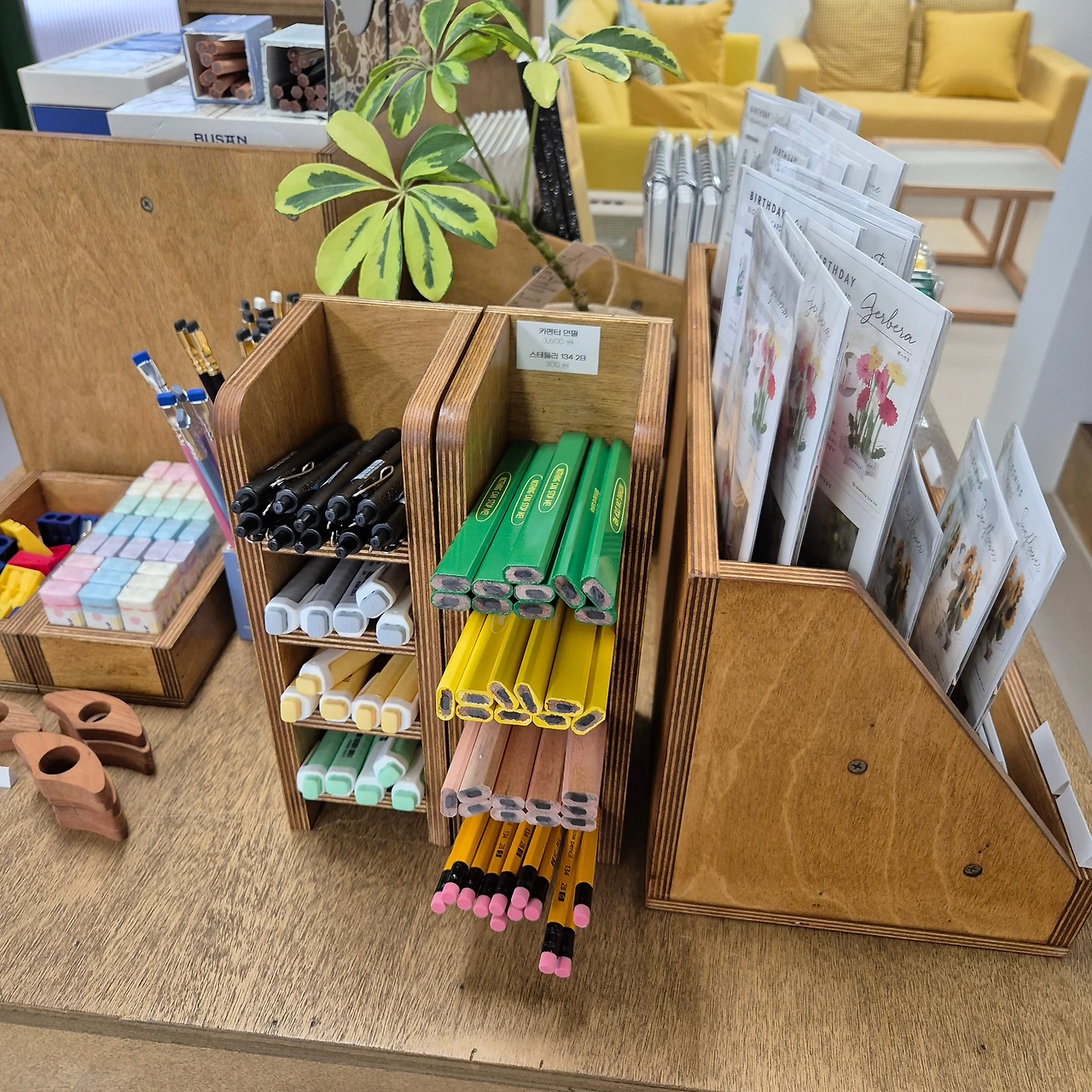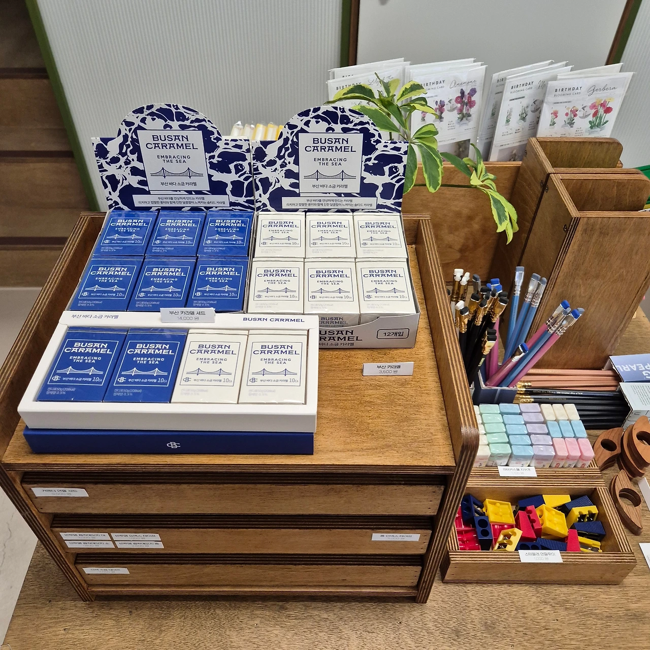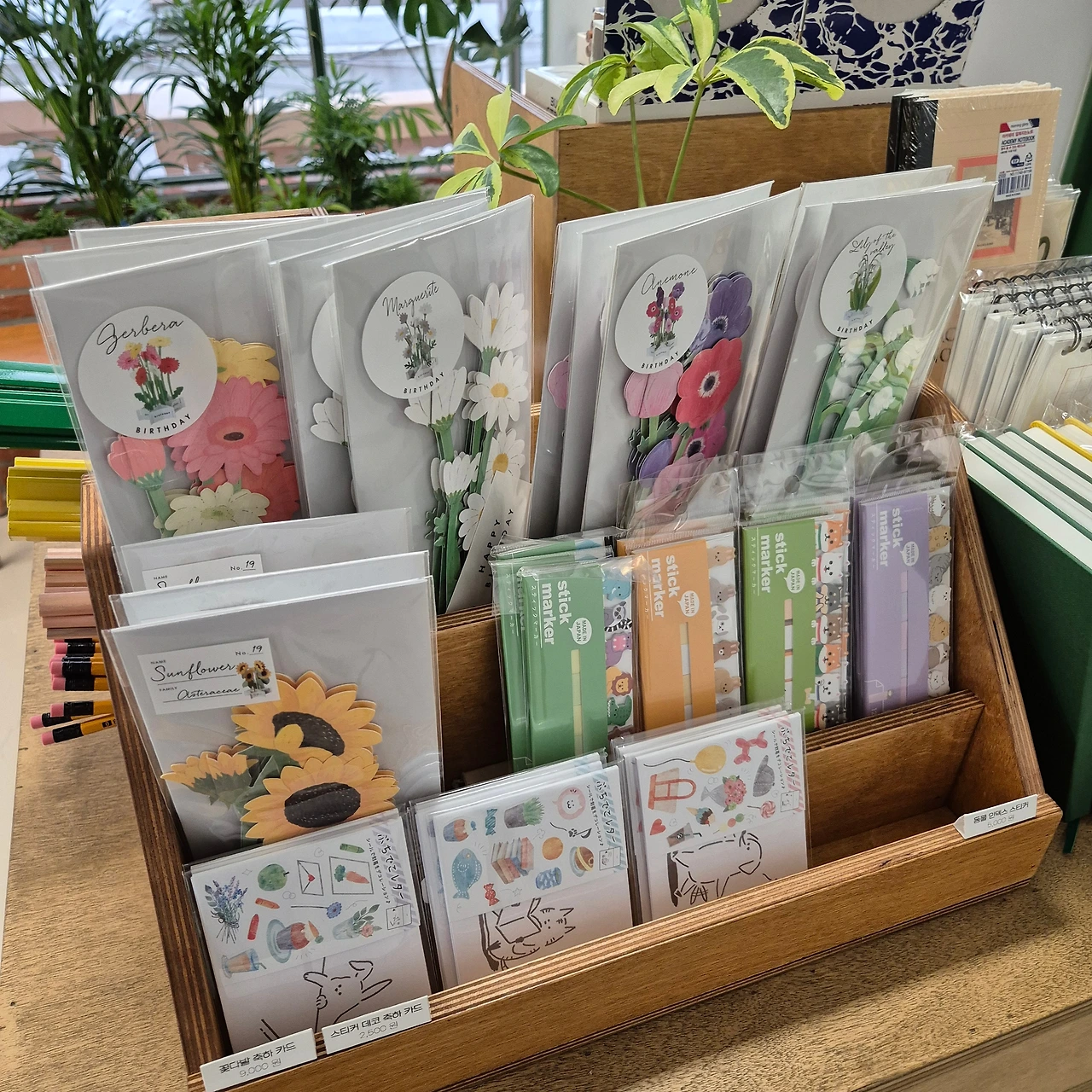 딸이 문구류 판매대를 꾸며 놓았습니다. 직접 디자인한 독서노트도 있고, 몇 가지 아이디어 상품이 있습니다. 이제 시작이지만 앞으로 아이템이 계속 추가될 것입니다. 딸의 재능이 빛을 발휘할 분야이며, 아울러 제가 가장 기대하고 있는 분야이기도 합니다. 잘되어야 하고 잘될 것으로 믿고 있습니다.