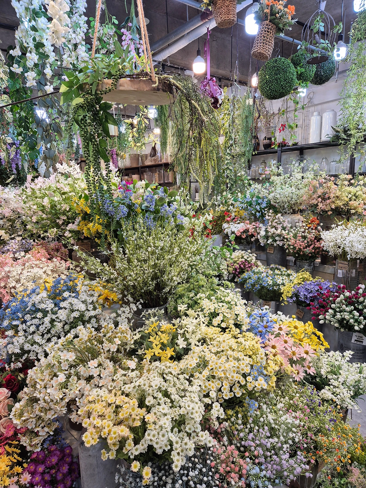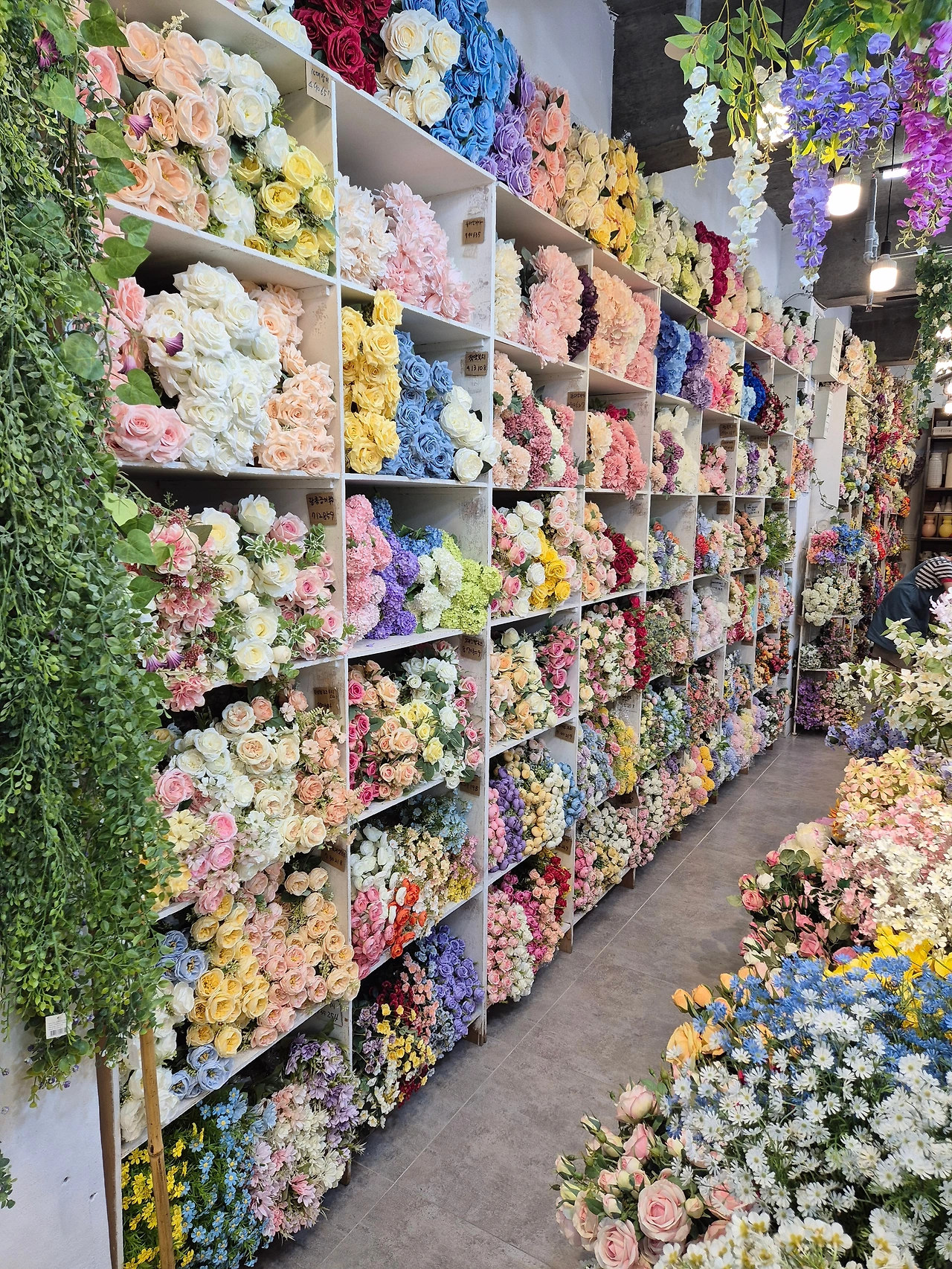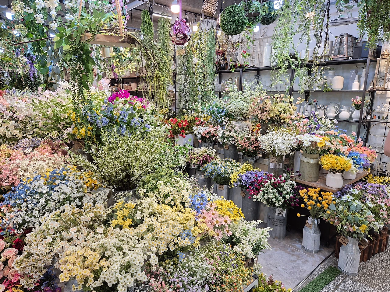 가오픈을 하고서 둘째 날 가게를 열기 전에 시장을 찾았습니다. 딸이 아무래도 허전한 부분을 조금이라도 채워야겠다는 것이었습니다. 역시 우리 딸, 고집이 보통이 아닙니다. 그래도 이번엔 바로 '조화'입니다. 손이 덜 가는 놈들이죠. 딸은 천장에서 내려오는 덩굴식물과 책장에 모양을 낼 작은 화분을 사기로 하였고, 저도 같이 따라나섰습니다. 조방 앞 자유시장입니다. 시장에는 정말 다양하고 예쁜 조화들로 넘쳐났습니다. 화사하고 예쁜 꽃들을 보니 그것이 비록 조화라고 해도 기분이 좋아지더군요.비록 남의 여자더라도 예쁘게 화장한 미녀를 보는 것처럼 말입니다.