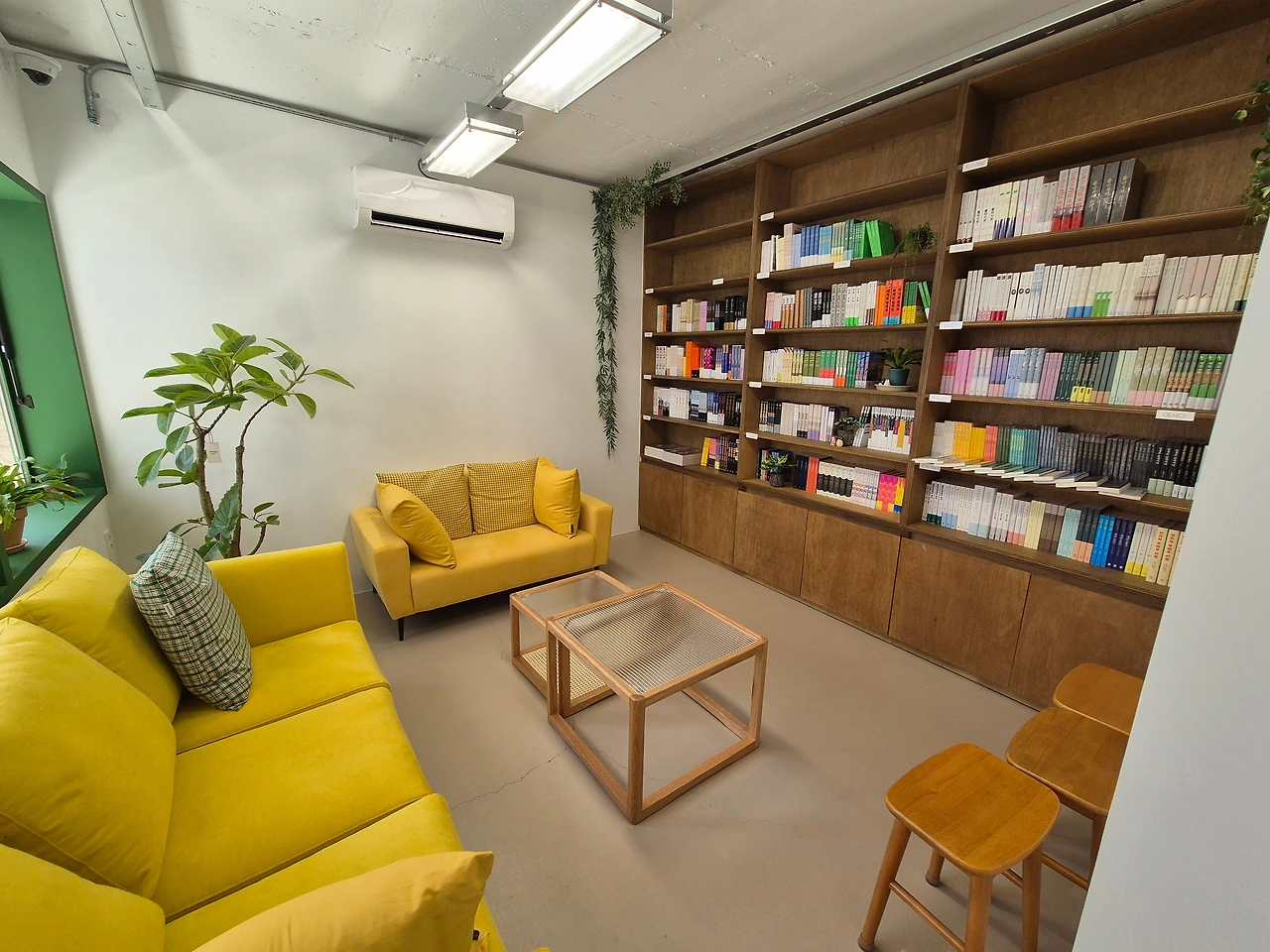깜깜한 밤이 되어서야 책장 정리가 다 끝났습니다. 이제 책방 분위가 좀 나는 것 같습니다. 노란색 포근한 소파에 앉아 책을 읽으면, 책 내용이 쏙쏙 잘 들어올까요? 아니면 잠이 솔솔 잘 올까요?책장 정리를 완성한 기념으로 사진 몇 장을 찍었습니다. 창밖에서 안쪽을 찍으니 완전 멋있습니다. 흐뭇합니다.