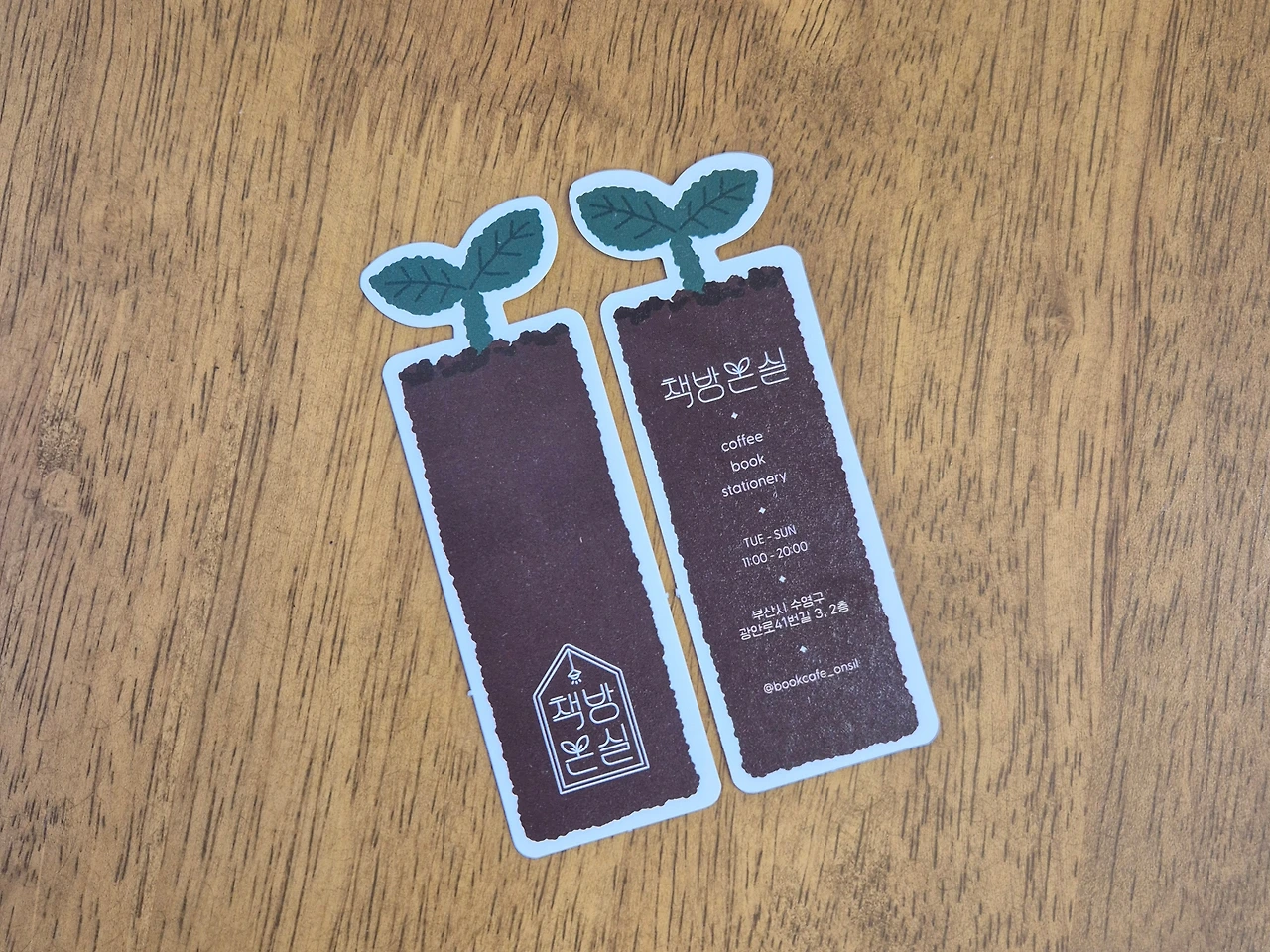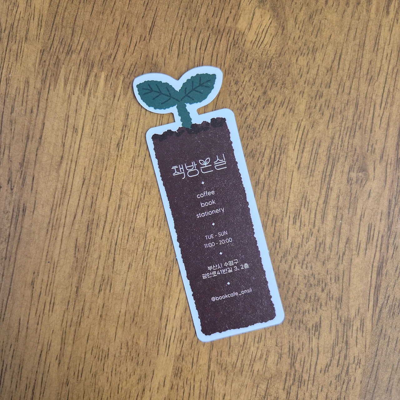 제가 요즘 점원으로 일하고 있는 북카페에서는 책을 구매하는 손님께 책갈피를 하나씩 드리고 있습니다. 가게 사장님이 직접 디자인 한 책갈피인데 새싹 모양입니다. 그 의미는 이렇습니다.