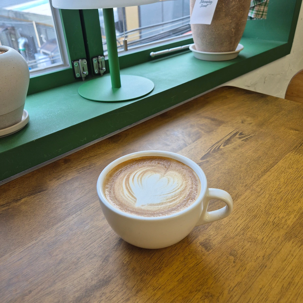 다음은 제가 제일 좋아하는 따끈한 카페라테 한잔을 만들어 창가 테이블로 갑니다. 손님이 오시기 전 혼자서 느긋하게 즐기는 소중한 시간이죠. 어쩌면 이 맛에 가게에 출근하는지도 모르겠습니다.