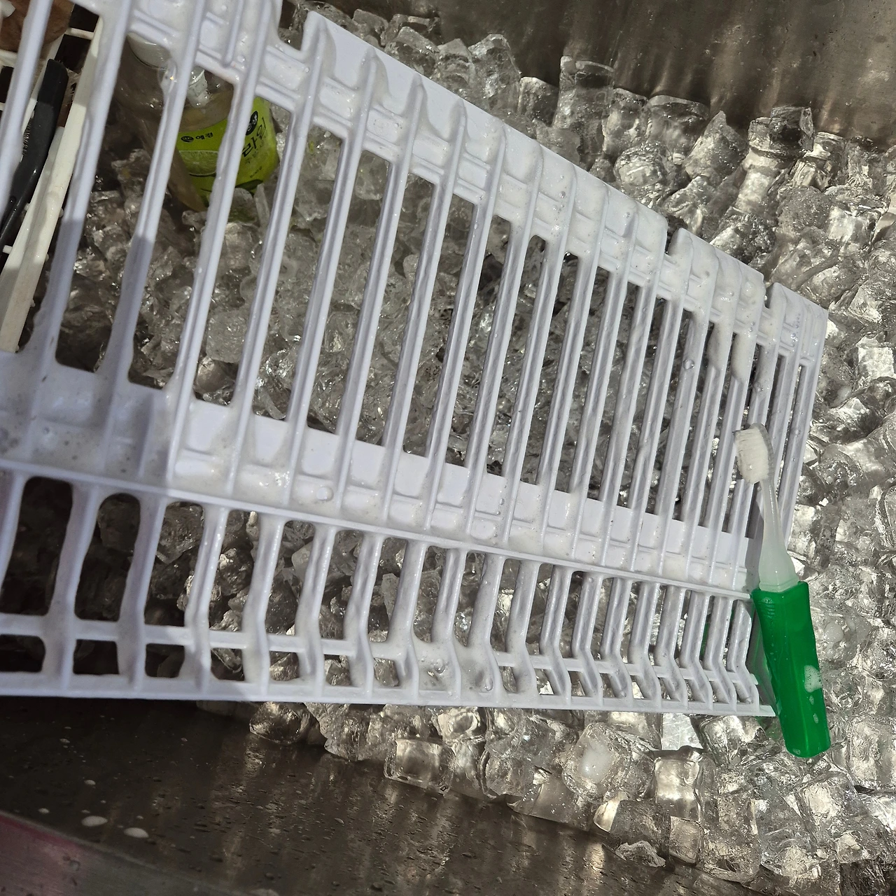 카페에서 위생에 제일 신경 써야 할 부분이 바로 제빙기입니다. 반면에 청소하기 제일 귀찮고 번거로운 녀석이기도 합니다. 처음 제빙기 청소할 때 구조를 몰라서 고생 좀 했는데, 이제 몇 번 해보았다고 손에 익었습니다. 먼저 급수 밸브 잠그고 전원을 끕니다. 다음은 남아 있는 얼음 다 퍼내고, 얼음 얼리는 부분 분해하여 솔로 구석구석 깨끗하게 씻어 냅니다. 그리고 제빙기 내부 전체도 깨끗하게 닦아 냅니다. 그러고 나서 다시 조립하여 가동합니다. 당연히 급수 밸브도 엽니다. 깨끗하게 몸단장해서 녀석도 기분이 좋은지 뚝딱뚝딱 얼음을 잘도 만들어 냅니다. 새로 만들어진 얼음은 몇 차례 퍼내어 버립니다. 청소하면서 들어간 이물질이 있을지도 모르니까요.