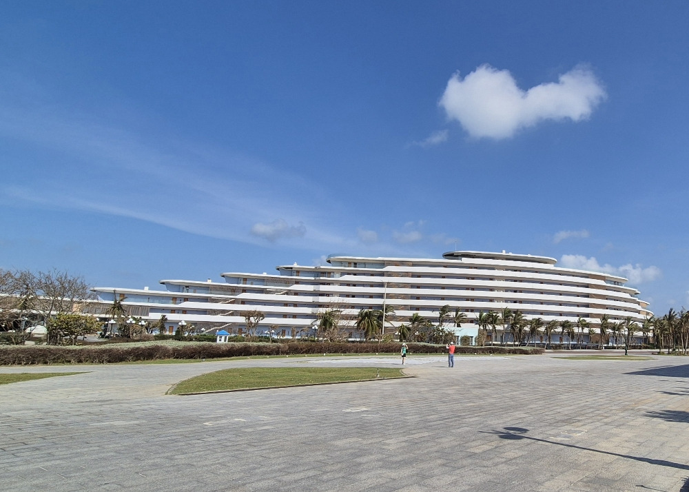다음날 아침 호텔에서 체크아웃하고 나서 다시 찾은 FLC 골프장. '어제 하루 경험 했으니 오늘은 잘 쳐야지.' 다짐했지만, 결과는 똑같았다. 바람이 전날보다 더 심하게 불었다. 티샷 하기가 힘들었고, 그린에서 퍼팅하기도 힘들었다. 게다가 바람 감안해서 오조준하여 샷을 날리면, 하필 바람이 잦아들어 공이 똑바로 가서 벙커로 들어갔다. '이런 덴장! 내가 공치러 왔지, 삽질하러 왔나?' 그래도 덕분에 삽질 실력은 늘었다. 푸른 잔디가 멋지게 깔린 페어웨이를 마다하고 벙커와 러프에서 삽질만 하다 라운딩이 끝났다. 더불어 스코어도 엉망. 그래도 고된 노동 후라 그런지 밥 맛은 좋았다. 베트남 골프장에서 제공하는 음식은 대부분 한국사람 입맛에 맞다. 아무래도 골프장을 찾는 한국사람들이 많다 보니, 김치를 밑반찬으로 제공하는 곳도 많다. 그곳도 그랬다. 김치와 상추에 쌈장까지. 더구나 야채튀김에 새우구이 닭튀김 등 음식이 얼마나 맛있던지, 골프에서의 아쉬움을 음식에서 다 풀었다. 거기에 덧붙여 시원한 맥주 한잔. 베트남에서 마시는 맥주는 또 얼마나 맛있는가! 매번 느끼지만 한국에선 이런 맛이 안 나는데 정말 신기했다. 그리고 태풍으로 인해 여러 가지 어려운 여건임에도 손님 접대에 최선을 다하는 직원들을 보면서, 한편으로는 미안하기도 하고 한편으로는 고맙기도 하고 또 한편으로는 잘 왔다는 생각도 들었다. 식사를 마치고 밖으로 나와 크루즈선을 본떠 지은 리조트에 묵지 못한 아쉬움을 사진으로 남기고 다음 여정을 위해 버스에 올랐다.