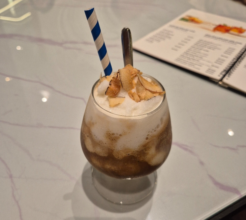 호텔로 돌아와서 샤워하고 갖는 휴식시간. 아내는 다른 사모님들과 쇼핑 나들이 가시고, 혼자 침대에 누워 그날의 라운딩을 반성하고 다음 날의 멋진 샷을 그려보았다. 한참을 빈둥거리다 커피 생각에 1층 로비로 내려가 보았다. 그리고 거기서 마침 들어오시는 사모님들과 딱 마주쳤다. '혼자 어디 가시려고?' 마치 몰래 나쁜 짓하려다 걸린 것처럼 뻘쭘해지는 상황. '아니, 사모님들이 소식이 없어 걱정이 돼서 그냥 있을 수가 없어서...' 그렇게 슬쩍 얼버무리고 함께 바에 앉아 음료 한잔씩. 나는 코코넛라테. 베트남에서 마시는 커피는 확실히 아이스가 맛있다.