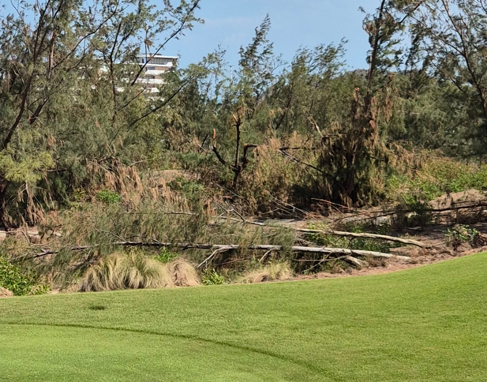 걱정 반 기대 반으로 FLC 골프장에 도착하였다. 다행히도 외견으로 보이는 골프장 모습은 괜찮았다. 안내 직원들이 환하게 미소 지으며 환영하는 모습을 보니 더 안심이 되었다. 한국의 골프장에 가면 미소대신 든든하고 신뢰 가는 표정으로 손님을 맞는데, 베트남에는 환한 미소로 손님들을 무장해제시키는 것 같다. 클럽하우스 데스크에 접수하고 번호표와 식사 쿠폰을 받았다. 점심이 공짜란다. 화장실에 들러 물 빼며 몸도 마음도 단단히 출격 준비하고, 카트에 올라 10번 홀로 이동. 후반부터 도는 코스였다. 코스에 직접 도착하고 보니 역시 태풍 피해가 눈에 띄었다. 중간이 부러지고 뿌리째 뽑히고. 그렇지 않더라도 가지가 부러지기도 하고 잎이 말라있는 나무들이 많았다. 베트남의 중부지역까지는 태풍이 거의 없는 나라였는데, 언제부턴가 태풍이 늘었다. 그리고 우기 때 한두 시간 내리는 스콜도 마치 우리나라의 장맛비처럼 하루 종일 내리기도 한다. 세계적인 기상이변이 베트남이라고 피해가지는 않는 것 같다.