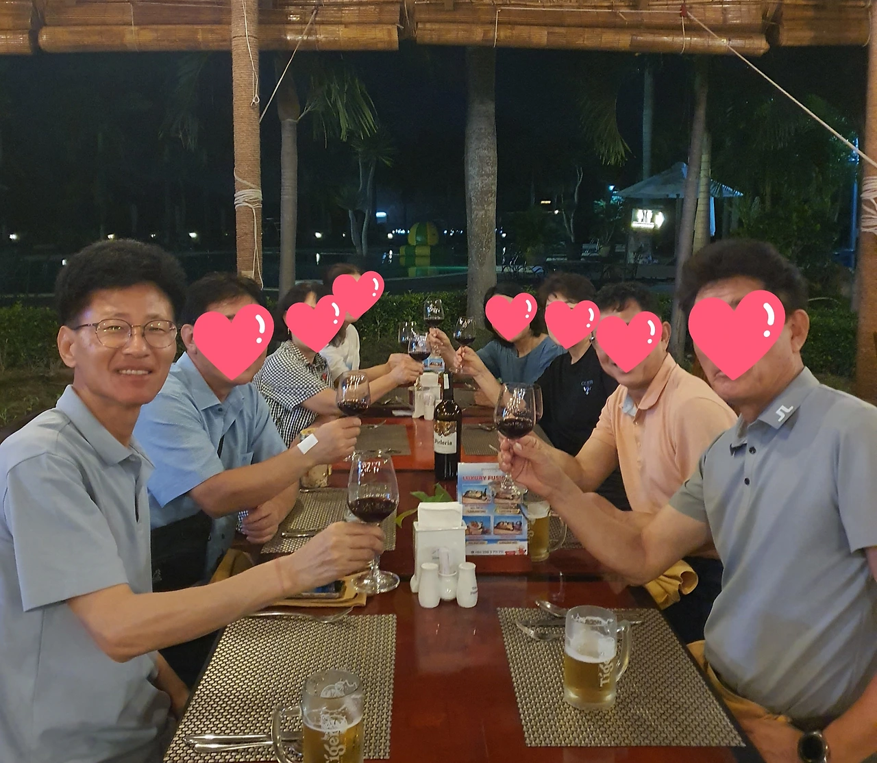 역시 밤이 되어 도착한 다음 목적지는 냐짱(영어발음 나트랑) 근처의 다이아몬드 베이 리조트였다. 체크인하고 배정받은 숙소에 짐 넣어두고 저녁식사를 하러 갔다. 해물볶음밥에 모닝글로리 볶음 그리고 쌀국수. 사모님들은 피자에 짜조(페이퍼롤)까지 다양하게 시켰다. 신부장님이 고급진 와인을 꺼냈다. 베트남공장에 주재원으로 와 있는 후배가 준 것이라고 하였다. 전임 법인장님들과 드시라고. 모두 고마워하며 잔 채우고 건배로 인증샷을 남겼다. 신부장님 이야기로는 베트남 공장이 몰라볼 정도로 바뀌었다고 하였다. 특히 새 부지에 건설한 2공장은 공장도 공장이지만, 사무실에 스마트 오피스를 구현하여 어느 일류기업 부럽지 않게 꾸몄다고 하였다. 내가 베트남 공장을 일굴 때에는 세계적인 금융위기로 자금사정이 나빴고, 베트남에서 생산할 제품이 수익성도 좋지 않아 허리띠를 바짝 졸라매고 땀 흘렸었다. 사장님으로부터 내핍생활 그만하고 직원들 잘 먹이라는 소리까지 들어야 했다. 그런데 이제 남부럽지 않은 환경에서 근무한다고 하니, 격세지감을 느꼈다. 그리고 한편으로는 그 당시 내가 쏟았던 땀과 노력이 지금의 베트남 공장 발전에 조금은 기여한 것 같아 뿌듯한 마음이 들었다. 아무쪼록 후배 직원들이 좋은 환경에서 더 열심히 일했으면 하는 바람을 가져 보았다.