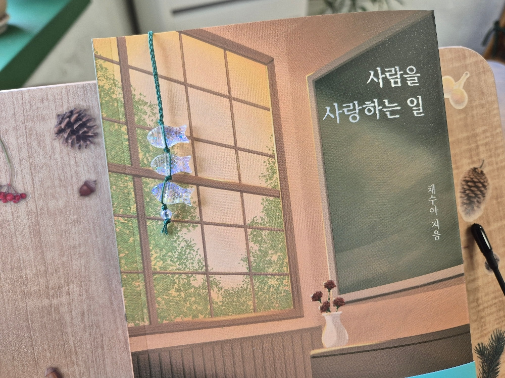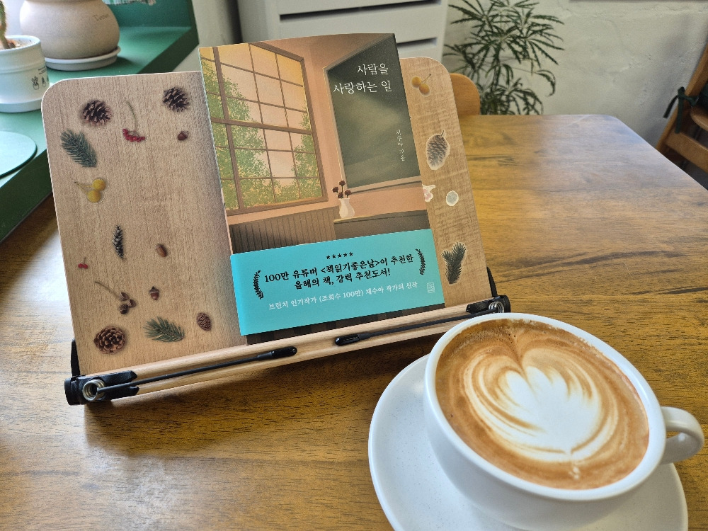 기다리던 채수아 작가님의 '사람을 사랑하는 일' 에세이집이 다른 책들과 함께 도착하였다. 오전에 볼일보고 일찍 도착한 가게. 손님이 뜸한 시간, 카페라테 한잔과 책을 들고 창가에 자리 잡는다. 독서대에 책 올리고 따끈 고소한 커피 한 모금하니 책 읽는 분위기가 제대로이다.