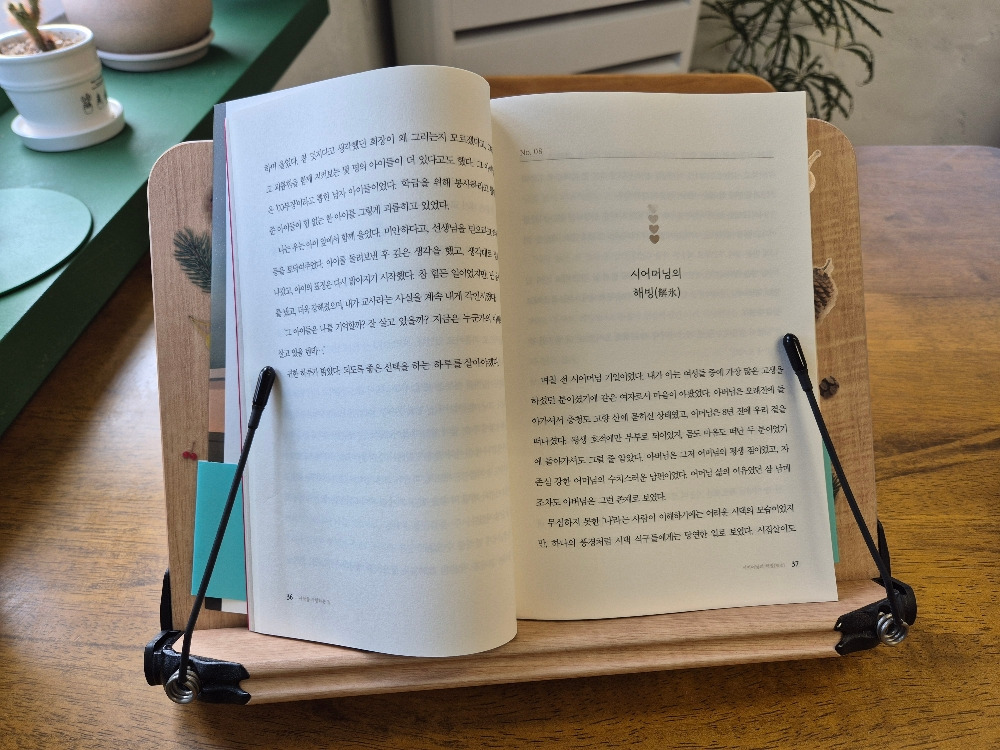 책에는 시어머니와의 이야기 외에도 작가님의 어린 시절, 부모님 이야기, 선생님으로 근무할 때 아이들과의 이야기가 실려있다. 대부분의 이야기들의 공통점은 따뜻함과 사랑이다. 작가님은 남들을 사랑하기 위해서 태어난 분이다. 그리고 누구보다도 자기 자신을 사랑하는 분이기도 하다. 그랬기 때문에 용기를 내어 힘든 삶을 버텨내고 남들을 사랑할 수 있었지 않았을까.