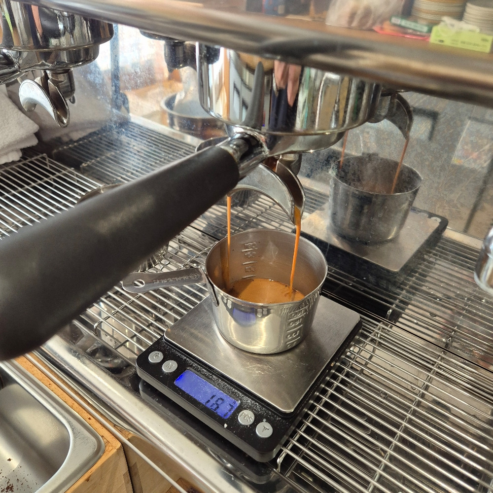 늘 그랬듯 부지런히 청소하고 에스프레소 머신을 세팅한다. 25~30초 사이에 33g 내외의 커피. 오늘은 26초에 32.2g이다. 뜨거운 물에 타서 아메리카노 맛을 본다. 익숙한 향과 맛. 합격이다.