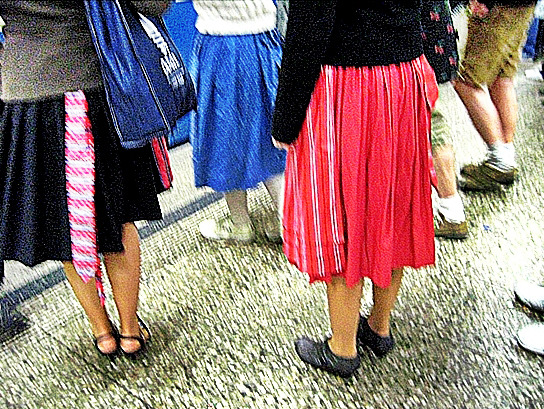 바바리아(바이에른) 지방의 전통의상이라고 하는데 여자들은 에이프런 묶는 방법으로 결혼 유무를 구별한다고 한다. 리본을 오른쪽에 매면 혼인했거나 약혼한 상태이고 왼쪽은 싱글, 뒤편은 사별...