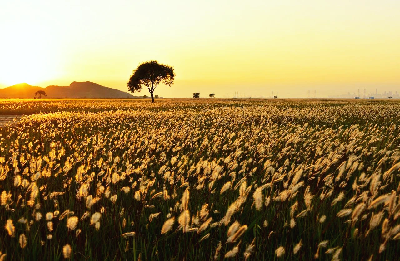 해지기 전의 새하얀 삘기가 바람에 일렁이며 눈부시다.