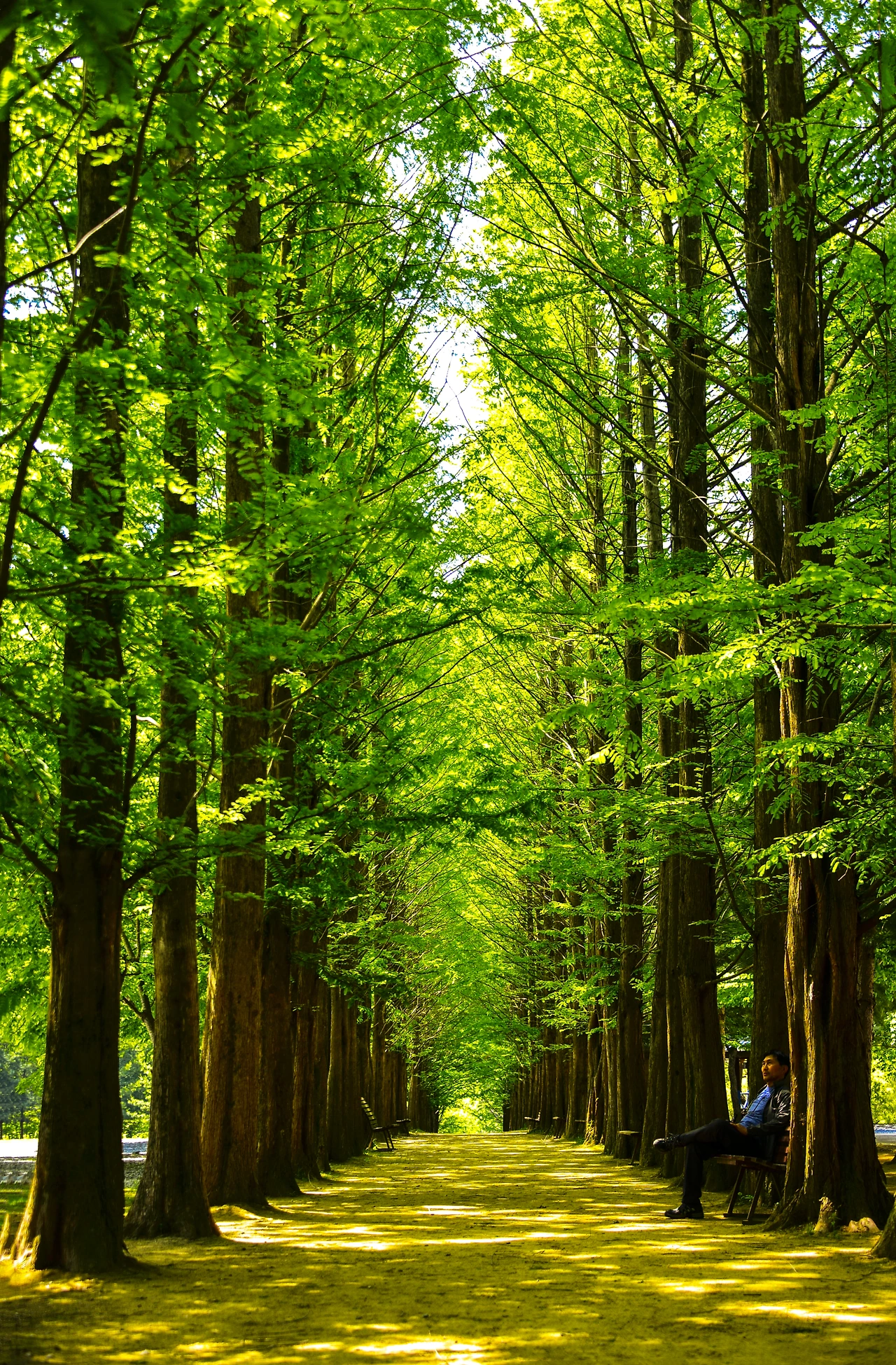 메타셰콰이어 터널 양 옆으로 캠핑장이 있고