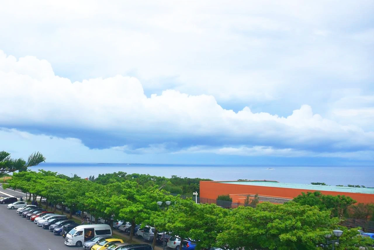 나오며 뒤돌아보니 츄라우미의 바다와 하늘은 먹구름으로 가득하다.