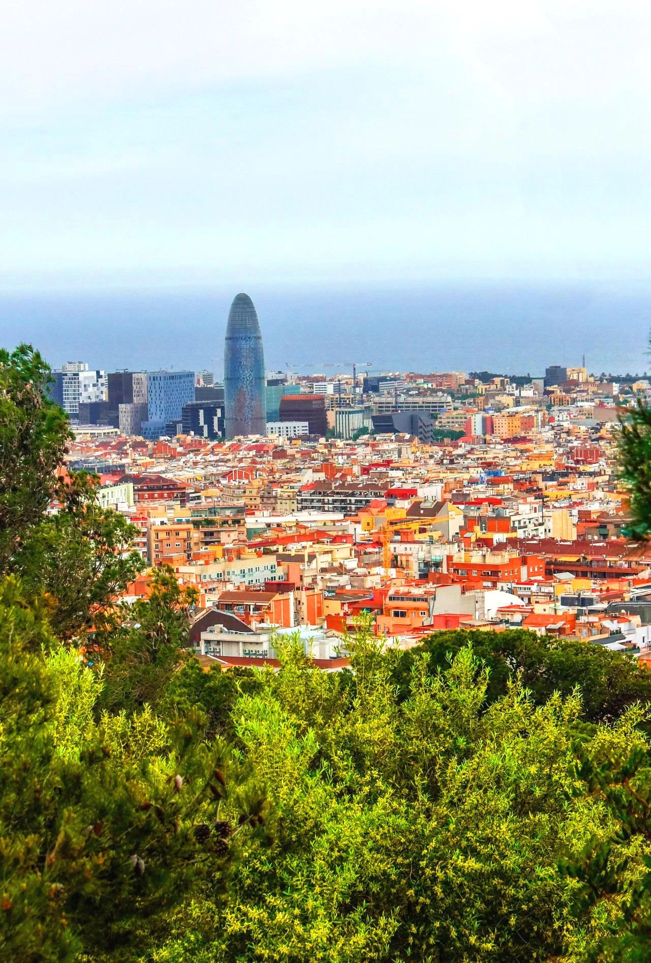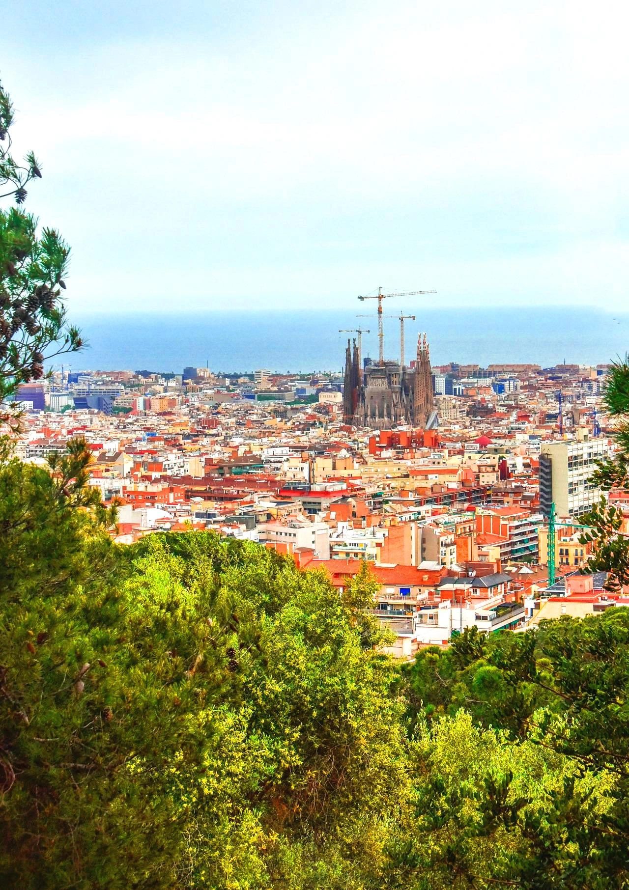 그리고 거기 오른 뿌듯함과 즐거움을 표출하는 사람들의 환호에 찬 몸짓과 예술적 건축물을 향한 시선만으로도 숨차게 구엘공원에 오른 보람을 갖게 한다. 시내 한 복판으로는 아직도 공사 중인 파밀리에 성당이 눈에 들어오고 흐린 날이었지만 멀리 지중해가 아득하다.