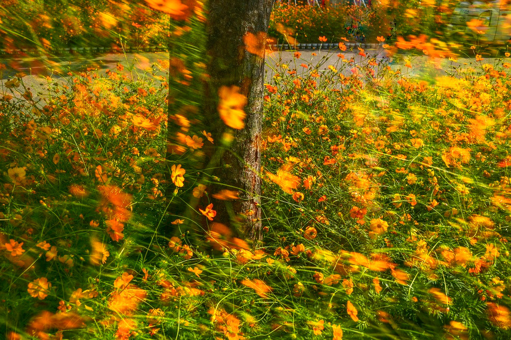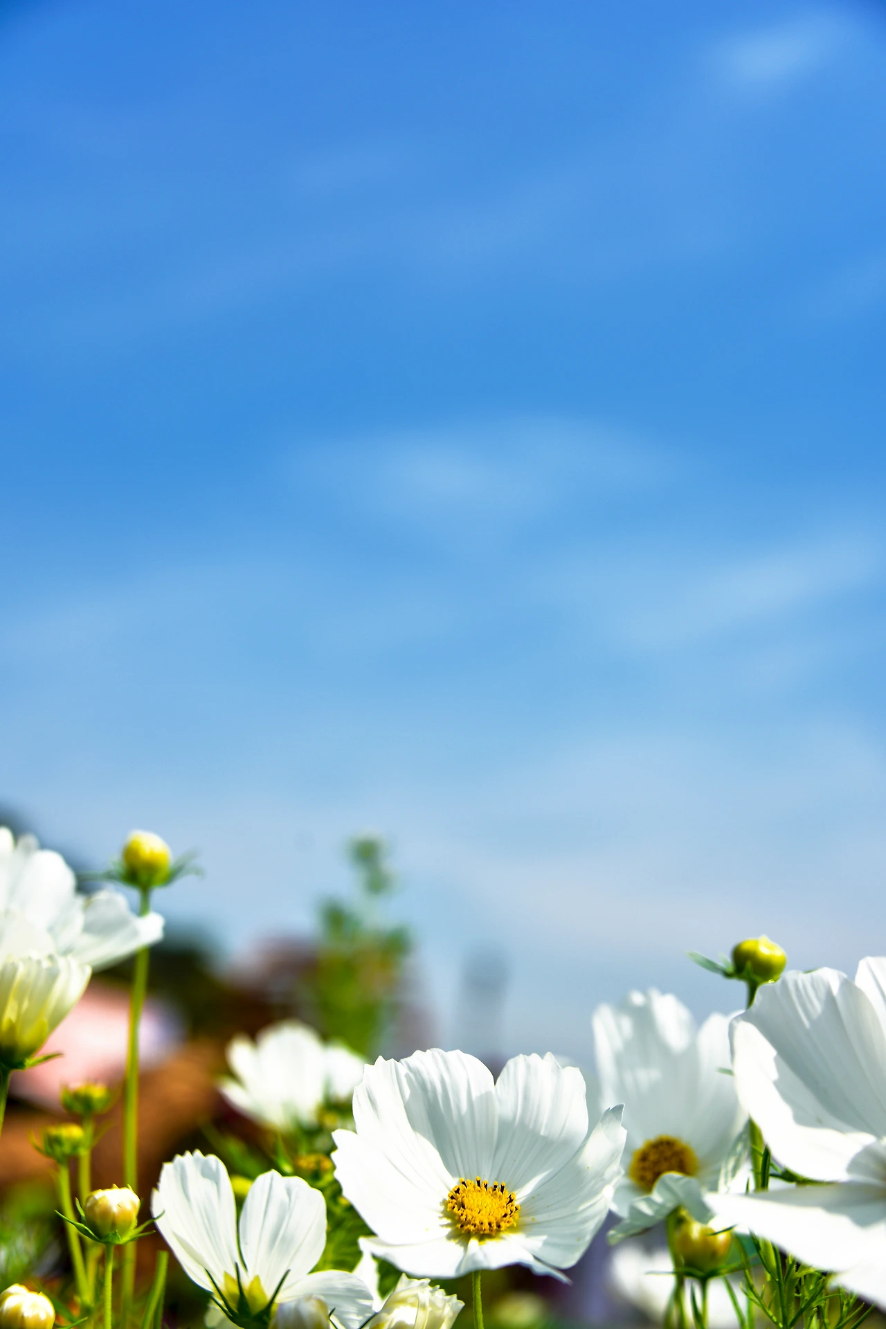 하늘은 높고 푸르고 그 하늘을 휘젓는 바람에 꽃들도 한들한들 흔들리며 바람의 기운을 즐기네요.