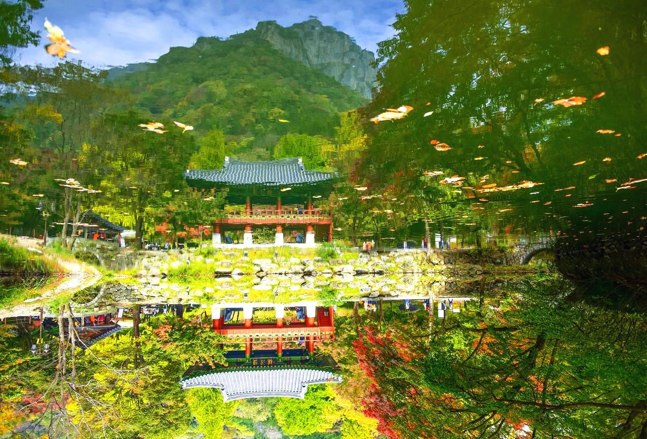 백양사 계곡에 떨어져 내리는 애기단풍잎들...
