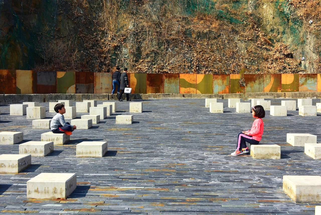 예정된 창작공연 포스터들이 붙어있다. 빛이 환히 들어오는 유리탱크도 있고 하늘을 담을 수 있는 천정에 둥근 구멍이 뚫린 탱크도 있어서 석유비축기지의 놀라운 변화를 볼 수 있다. 다시 밖으로 나가면 극장을 감싼듯한 산자락 아래 야외무대가 있는데 돌다리와 같은 콘크리트 의자가 널리 깔려 있다. 징검다리 건너듯 아이들이 뛰어놀고 마주 앉은 연인들이 정답다.