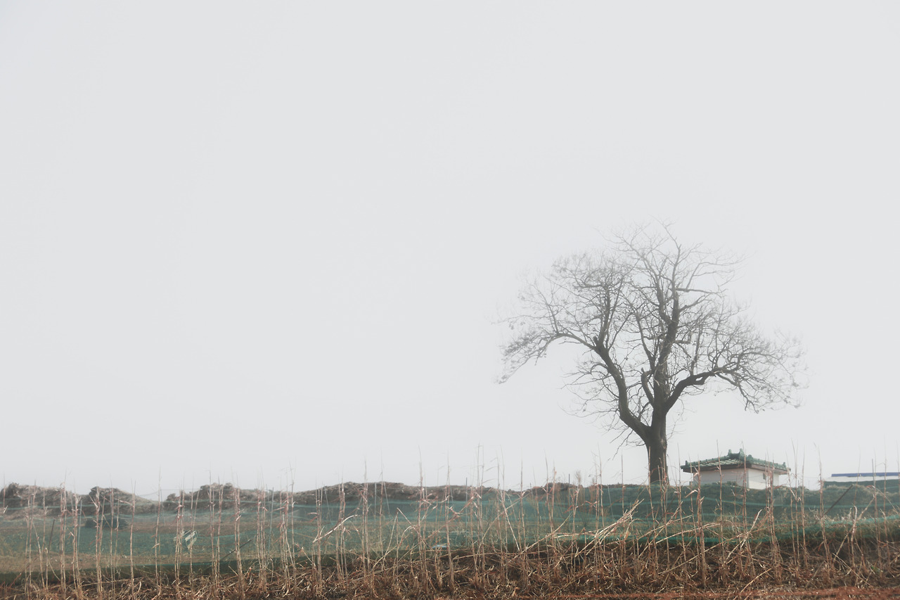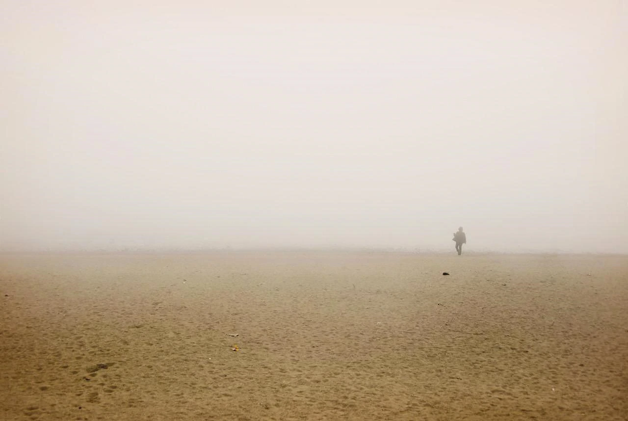 한 치 앞이 안 보이는 미세먼지 자욱한 민머루 해변에서 잠시 서성이다가 되돌아오다.