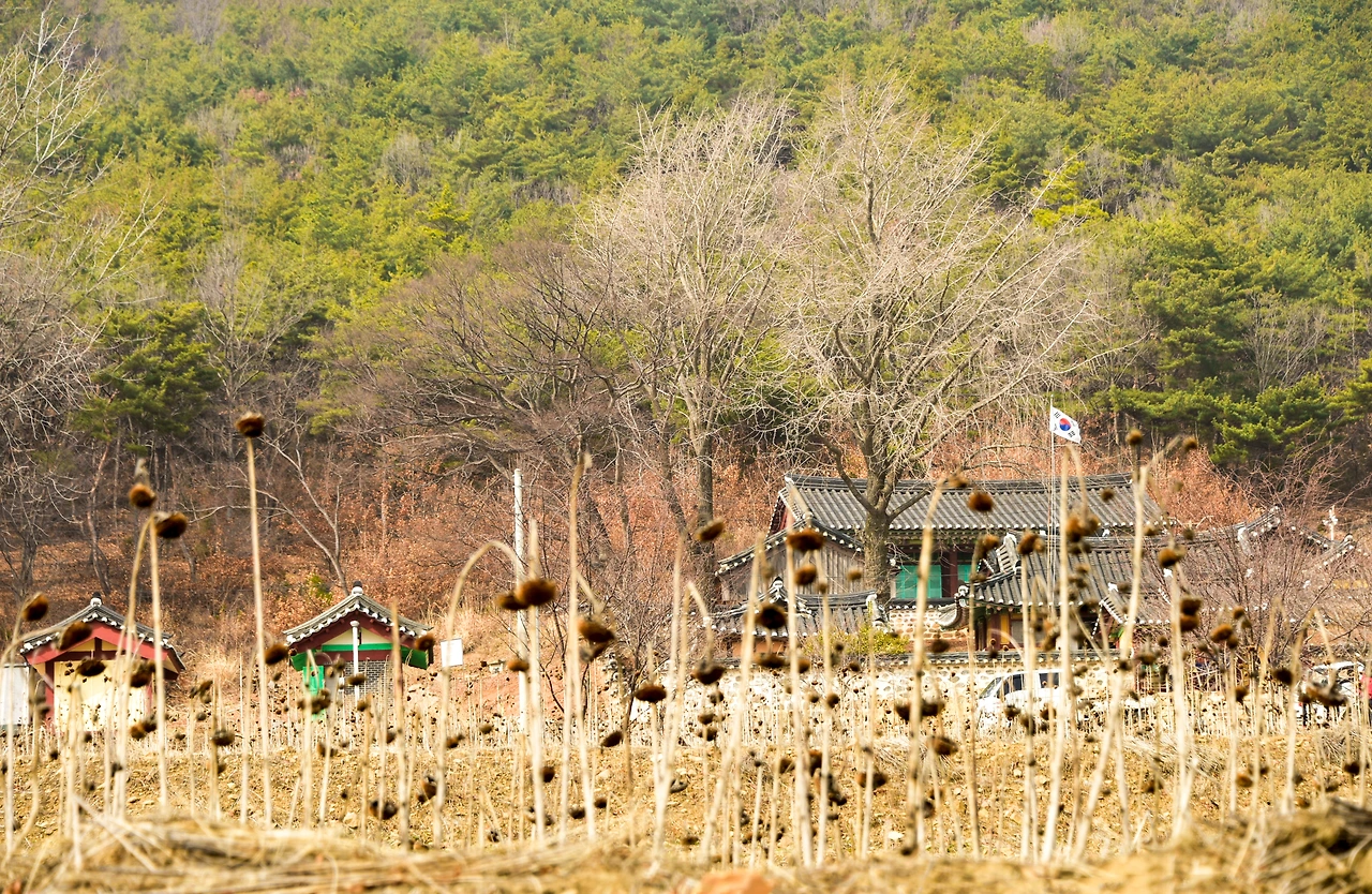 강화 향교로 들어가는 길 양옆의 밭에 해바라기가 계절을 다 보내고 바짝 마른 채 앙상하게 서 있다.