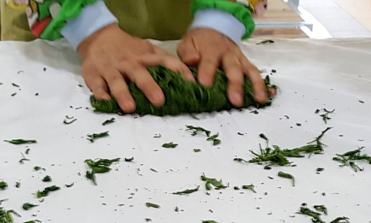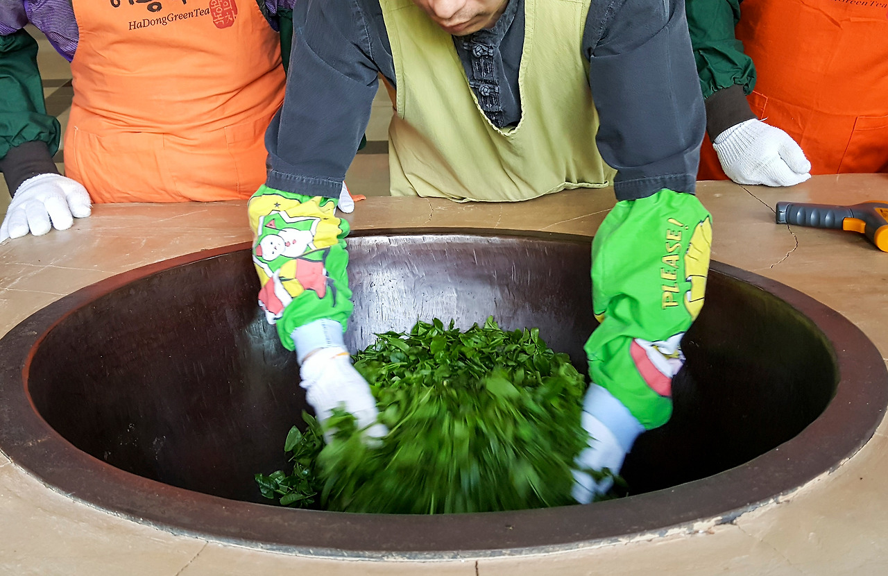 먼저 1층에서 차 덖음을 배우고 체험했다.