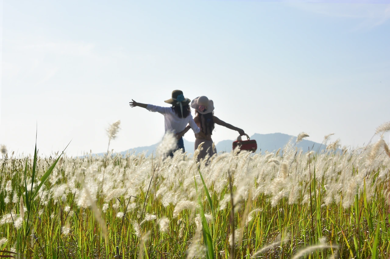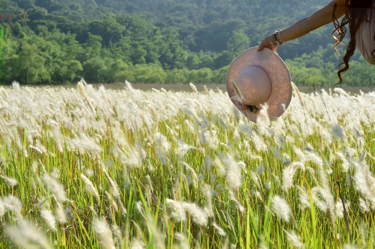 이국적인 풍경에 모델들까지 대동한 출사팀들이 군데군데 보여서 살짝 찍어볼 수 있었다. 고맙게도 그들이 묵인해 주었다. 사진을 찍다가 보면 일행들이 삘기꽃의 숲에 가리어져 보이지 않다가 나타나곤 한다. 마치 숨바꼭질을 하는 것과 같은 재미도 있다.