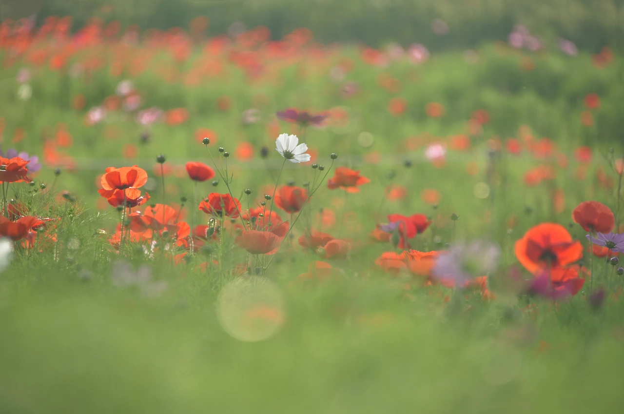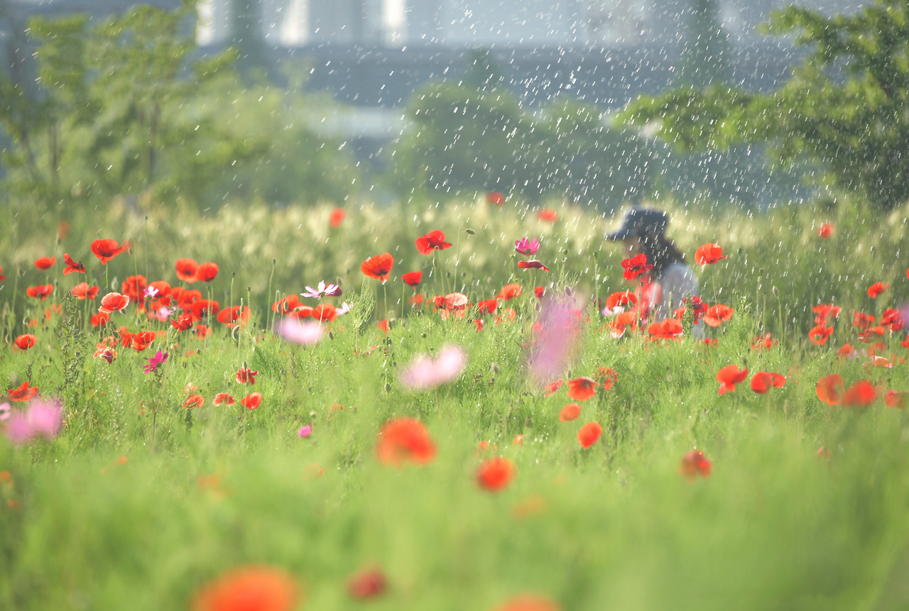 이제는 양귀비와 코스모스, 갖가지 풀들이 어수선히 뒤섞여 있다.
