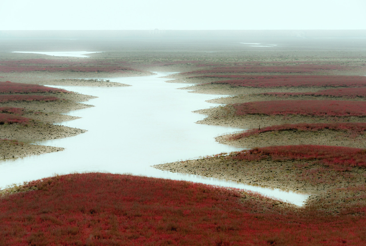 매립된 땅을 인근 도시와 연결하는 방대한 계획이 있어서 갯벌이 사리지게 될 위기에 있다. 가끔씩 작업차량들이 먼지를 일으키며 지나가며 어서 나가라고 한 마디씩 한다. 붉은 꽃처럼 피어나 갯벌을 뒤덮고 있는 함초를 비롯한 염생식물들이 사라지고 머잖아 문명의 번쩍임이 우리 눈 앞에 드러날 모양이다.