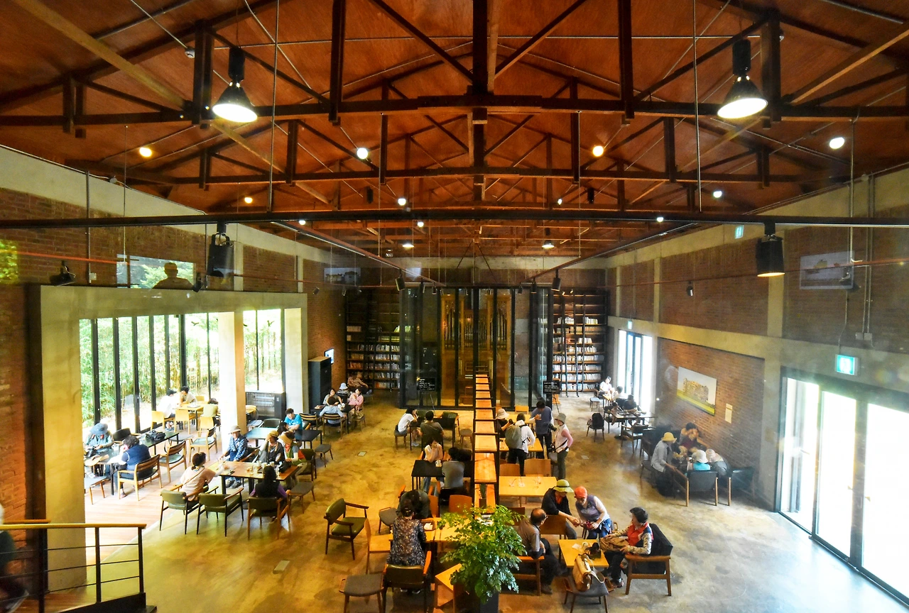 원래는 예전엔 양곡창고였었는데 이제는 용도가 복합 문화공간으로 바뀐 것이다. 창고를 리모델링하여 천정이 높은 복층의 카페로 개조하였는데 북카페처럼 도서가 꽂혀있는 서가와 대나무로 만든 파이프오르간이 전시품처럼 설치되어 있다. 연주하는 시간이 따로 있다 하니 들어보고 싶으면 미리 확인해 보아야 한다.