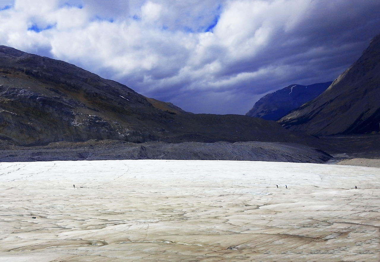 이렇게 멀리 로키까지 달려온 여행자들은 흥분에 가까울 정도의 감격스러움을 마음껏 폭발시킨다. 아싸 바스카 빙하 위로 햇살은 쨍하게 튕겨지듯 빛나고 빙하 끄트머리에 아스라이 콜롬비아 빙원이 보인다. 요즘처럼 여름이 길어지는 지구온난화를 경험하며 이제 언젠가는 이런 여행도 어려워질 것 같은 생각이 문득 들었다.