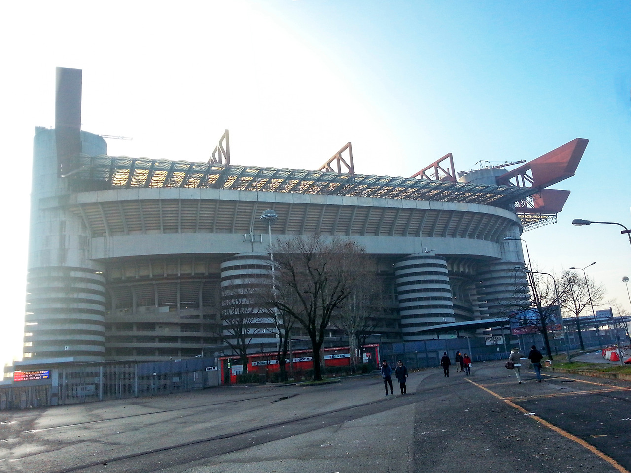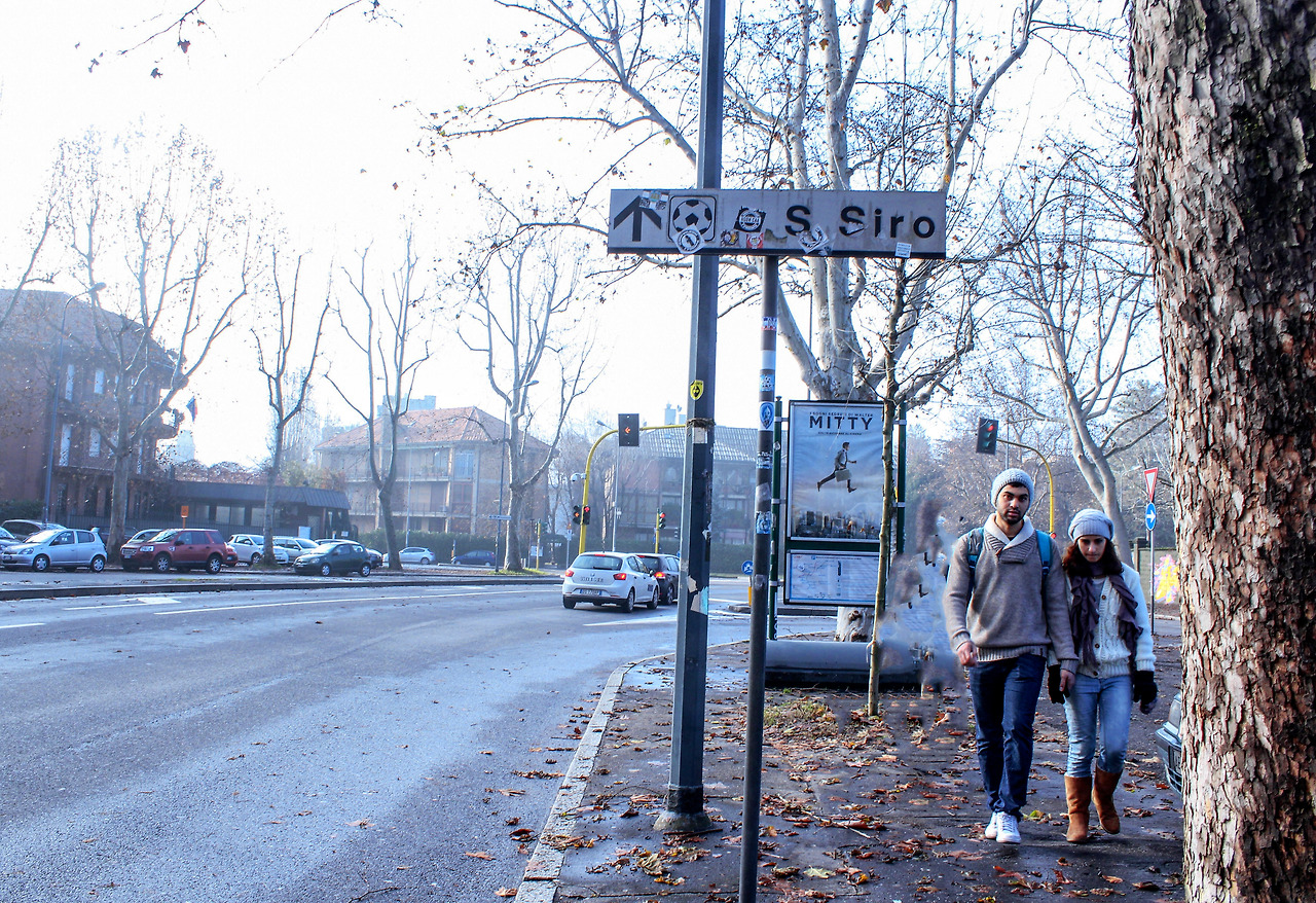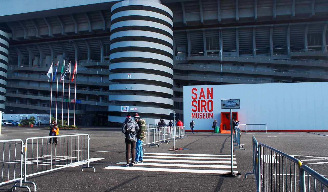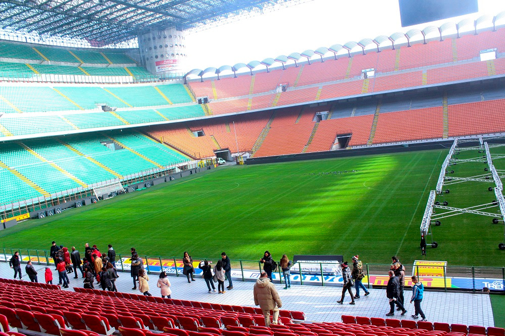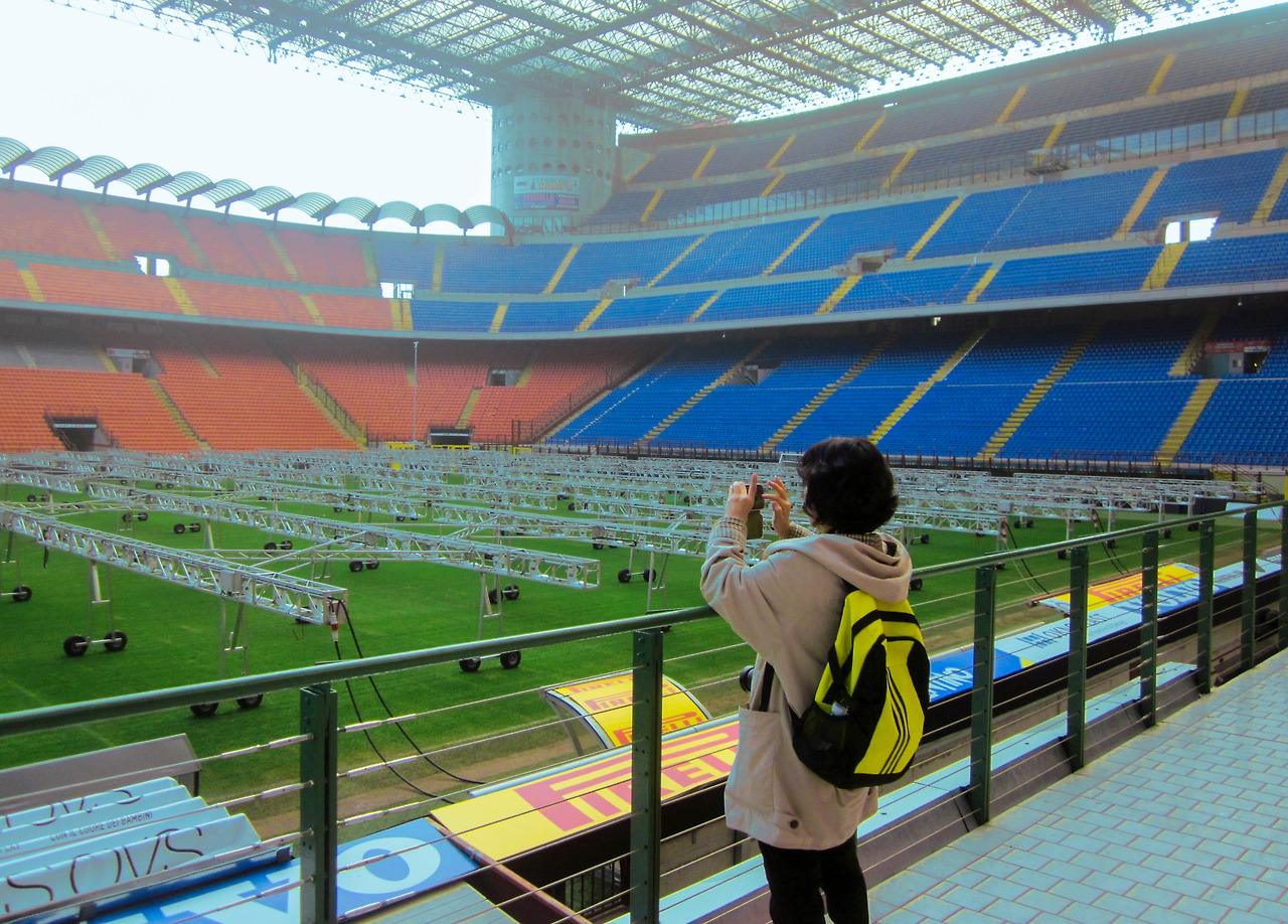 이곳은 이탈리아 AC밀란과 인터밀란은 같은 지역 연고로 같은 경기장을 쓰고 있다. AC밀란 경기 때는 산시로, 그리고 인터밀란 경기 때는 주세페 메아차라는 이름을 사용한다고 한다. 경기가 없는 날이지만 구경하러 온 사람들이 이미 줄지어 있다.