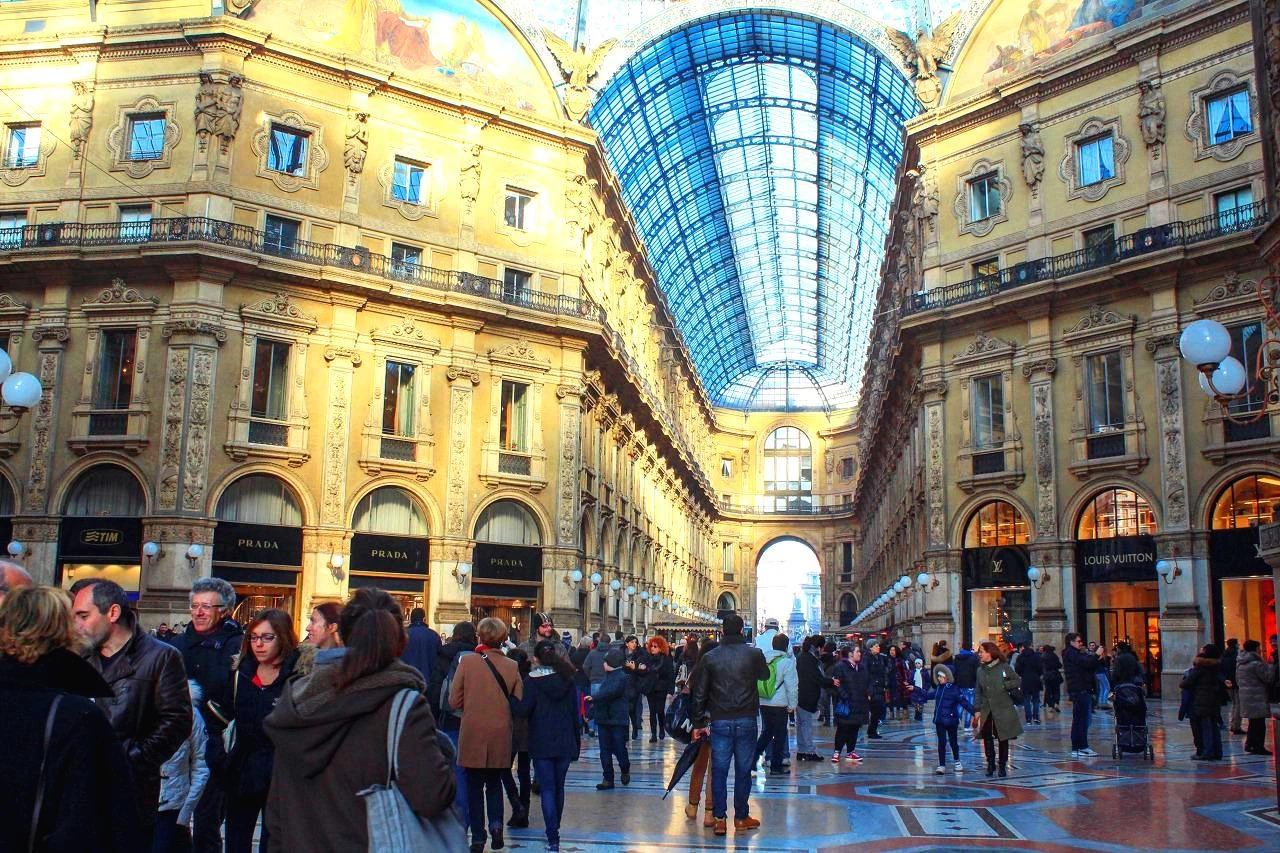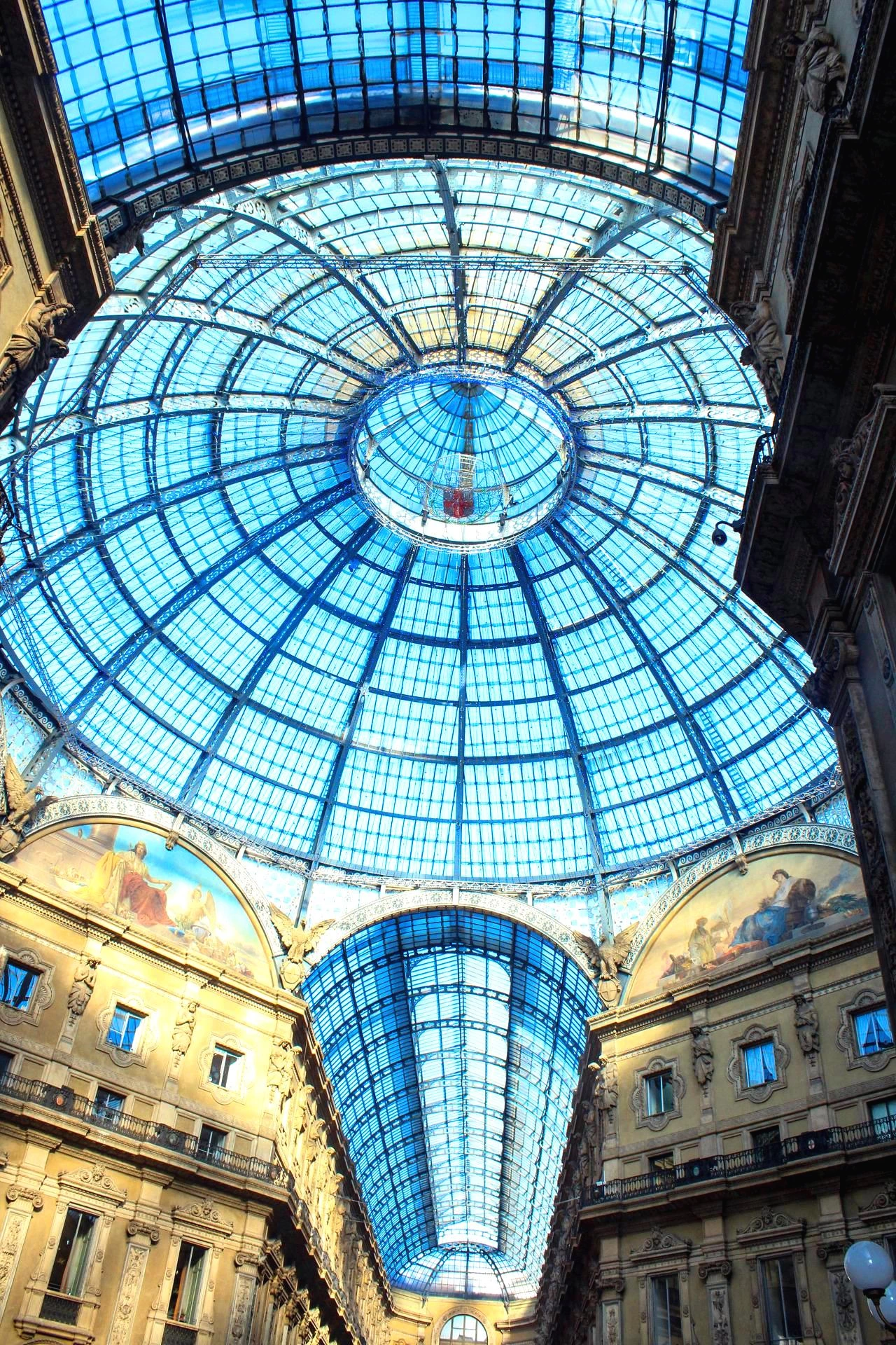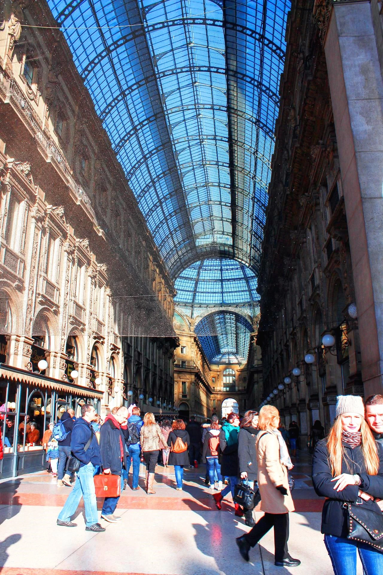 바로 그 옆으로 대형 아케이드가 있는데 우리가 흔히 생각하는 상가가 아니다. 100년 이상의 역사를 가진 비토리오 에마뉴엘리 2세 갈레리아 아케이드라는 이름이다. 웅장한 건물의 통로로 들어서면서부터 중앙을 십자로 가르며 사방의 건물의 연결하는 길이 이어지고 천정의 창 구조물이 예술작품이다.