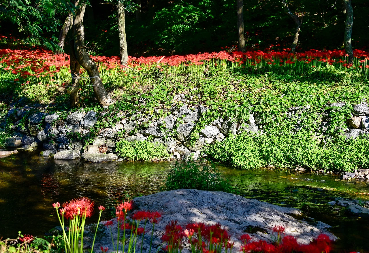 경내에 들기 전부터 주변에 붉은 꽃무릇이 지천이다. 군락을 이룬 꽃으로 뒤덮인 선운사는 꽃구경하러 찾아든 사람들로 북적이고 있었다. 다들 사진을 찍느라 바빠 보였지만 산사의 계곡을 따라 좋은 사람들과 산길을 천천히 걸으며 꽃을 즐기는 것만으로도 행복하다. 원 없이 꽃무릇 속에 잠겨 본 날이다.
