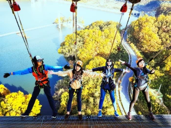 무엇보다도 댐 주변을 중심으로 여행자들에게 재미와 스릴을 만끽할 수 있는 시설들이 들어서 있어서 반드시 즐겨야만 제 맛이다. 멀리서부터 마치 피사의 사탑처럼 하늘 높이 솟은 레인보우 짚와이어가 눈에 확 들어온다.