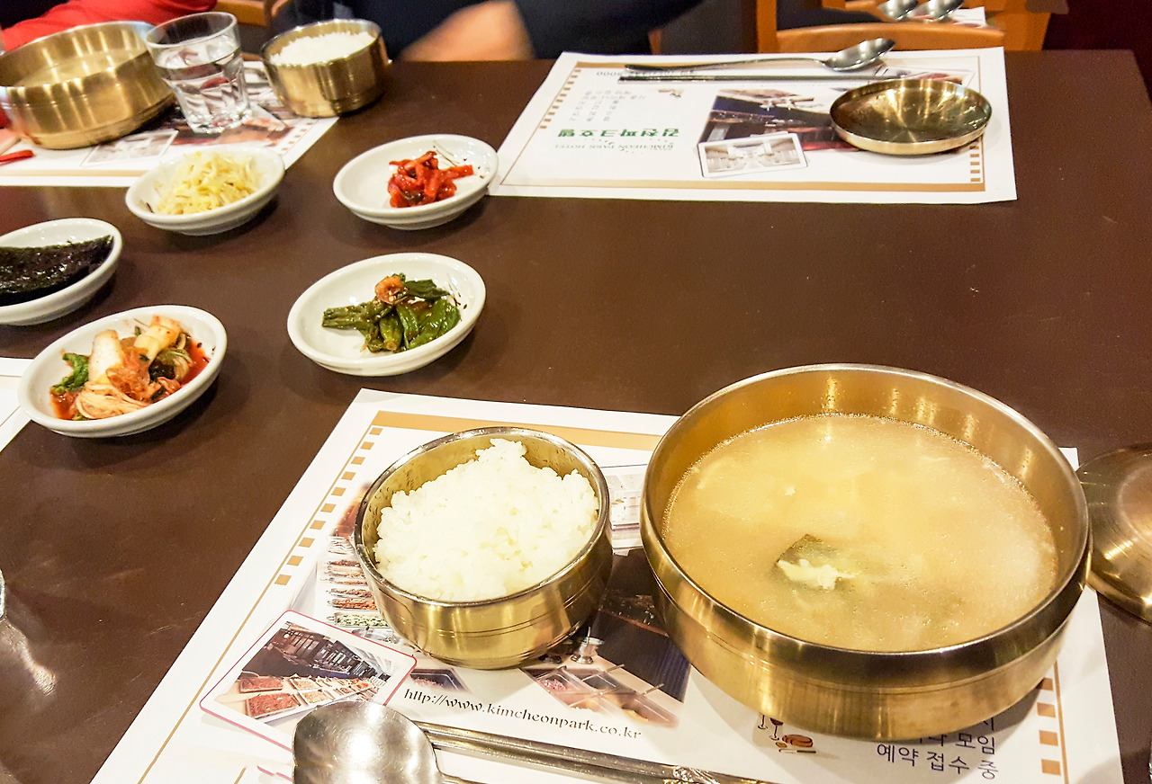 하루 묵었던 김천 파크호텔의 조식으로 쌀밥과 반찬 몇 가지, 그리고 황태 뭇국은 아침식사로 부담 없는 메뉴였다. 식사를 하며 넓은 창을 통해 바라보던 김천 교외의 풍경이 평화롭다.