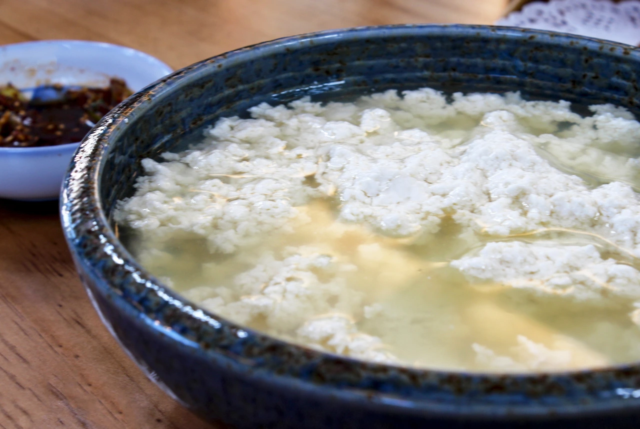 아침 일찍이 우리 땅에서 수확한 콩으로 만든 두부가 나오는데 금방 매진된다고 한다.